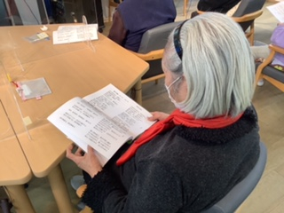 歌本を見ながら懐かしい曲をみんなで歌いました。