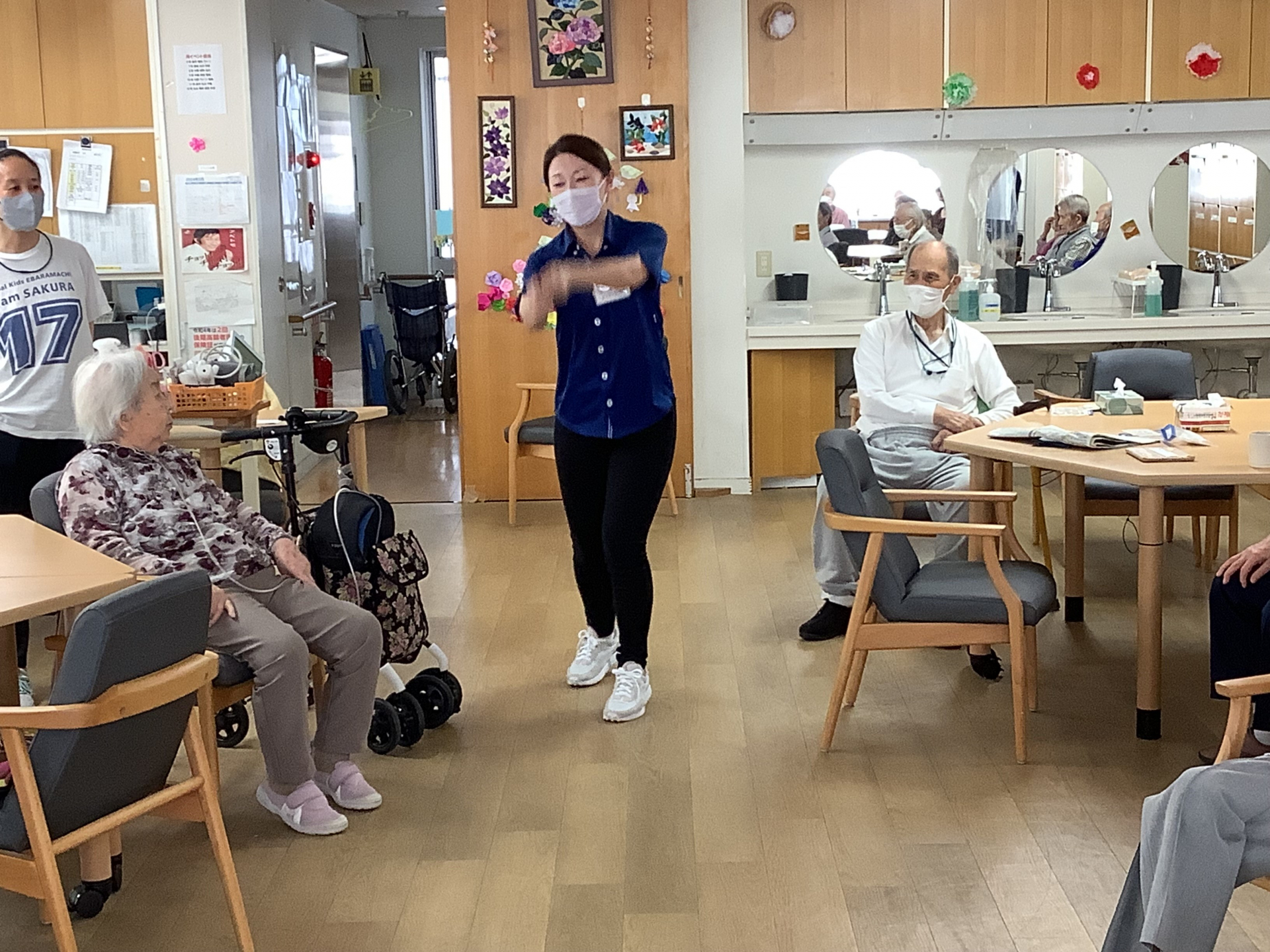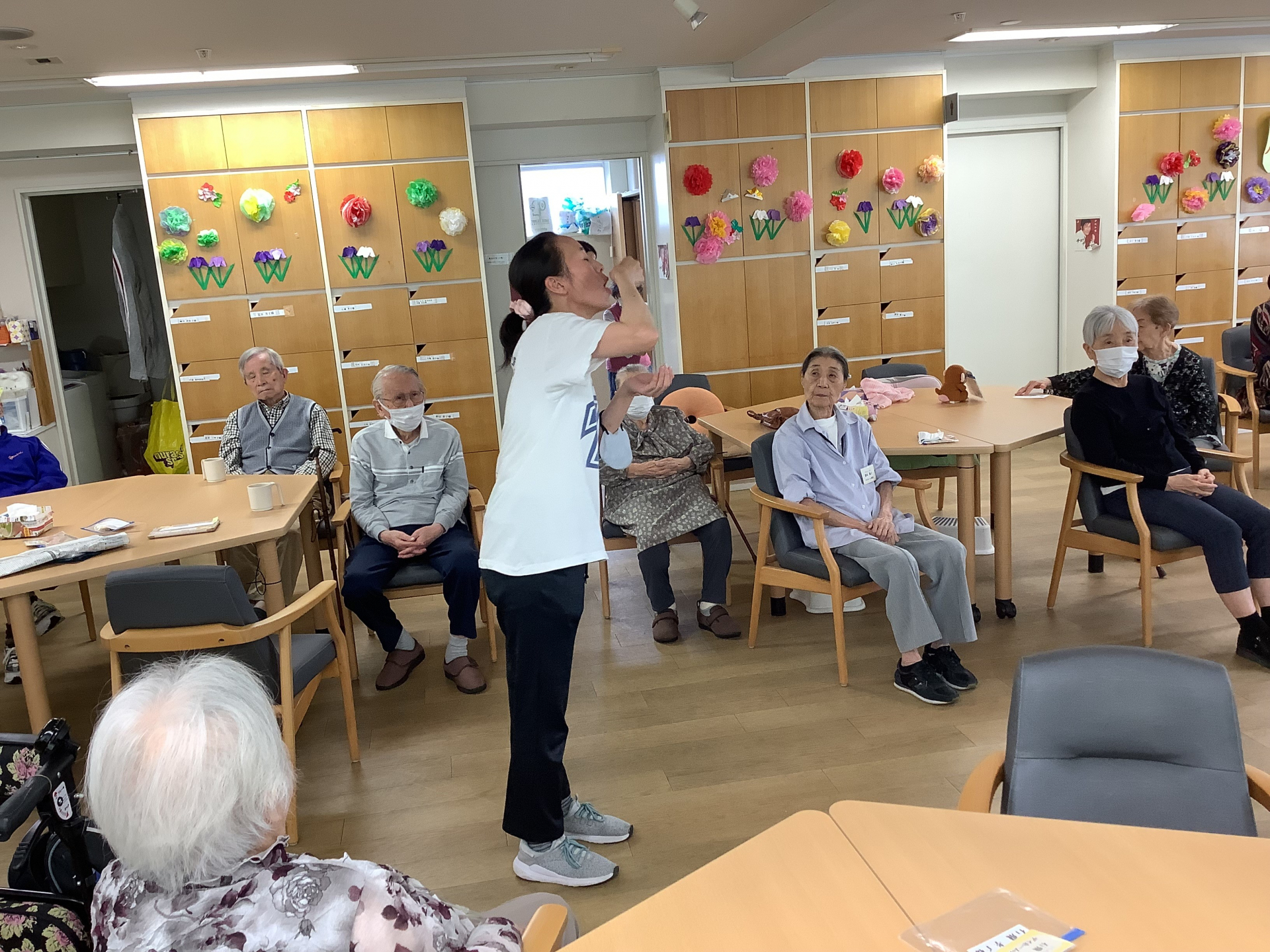 午後のレクではいつも利用者の皆様が運動系ゲームやクイズで頑張ってらっしゃいます。