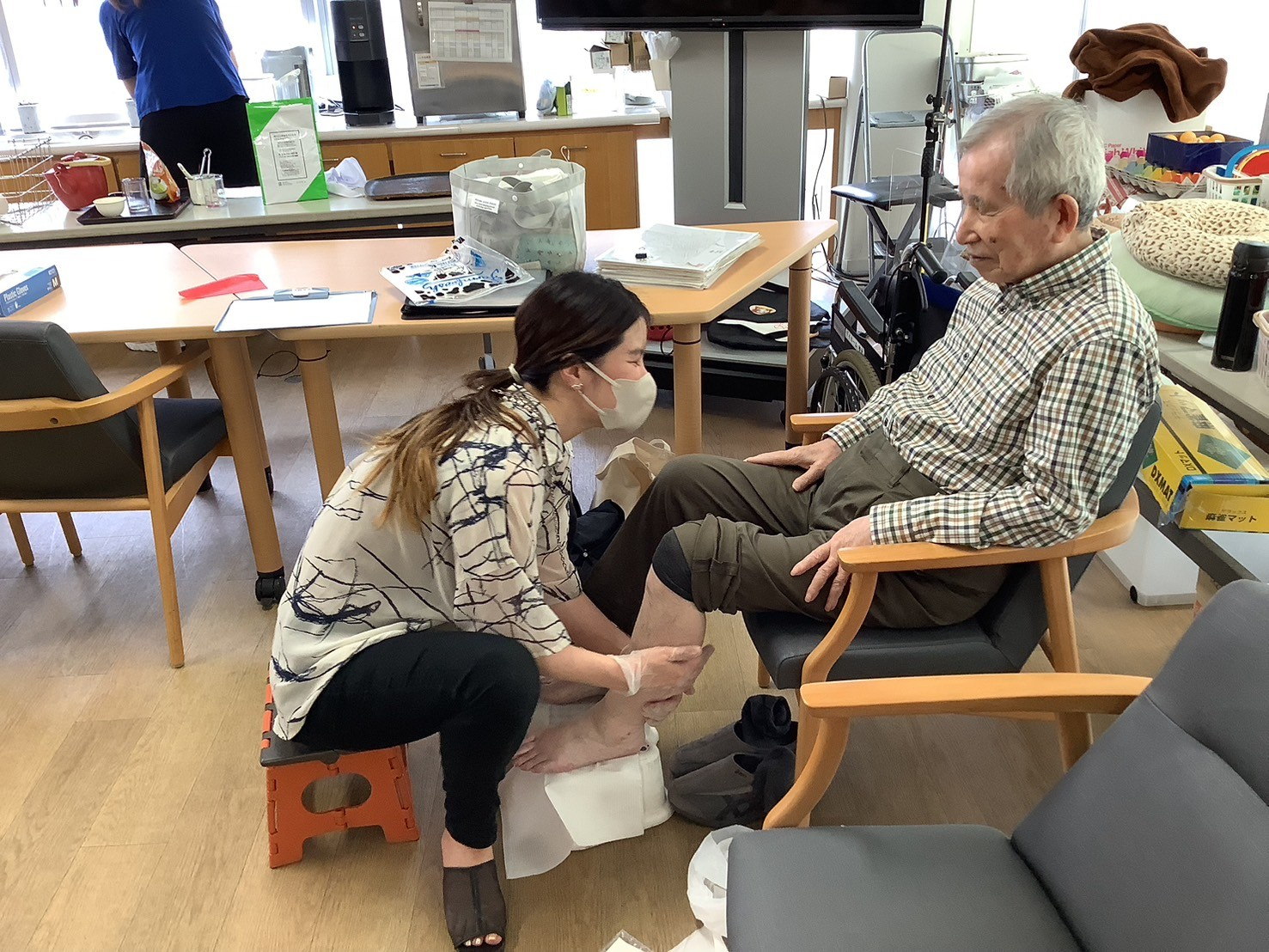 マッサージで血流やリンパの流れを促し、むくみ予防や歩行改善に効果があります