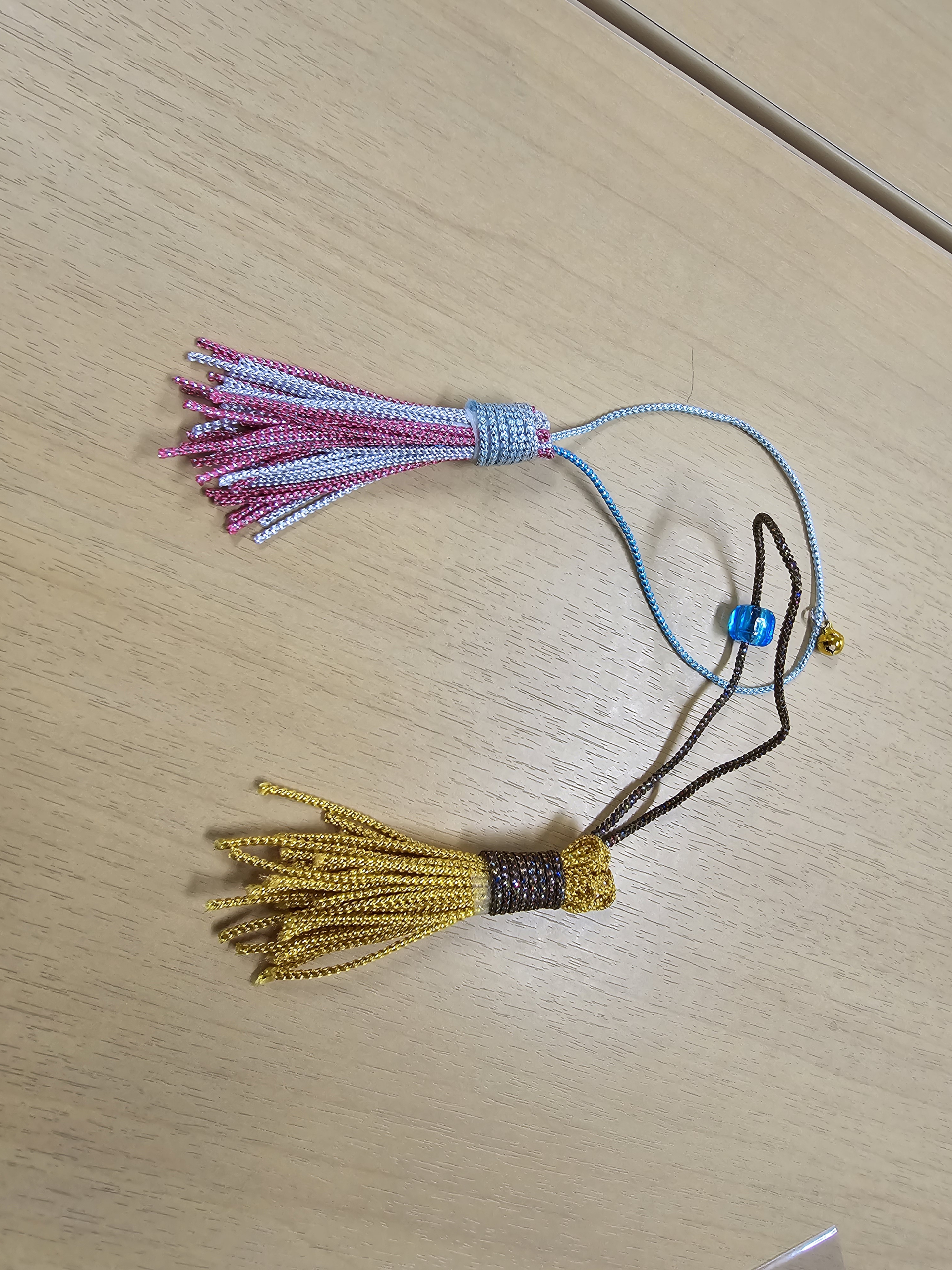 完成した後はすぐに、早速杖やカバンにつけられていました!!