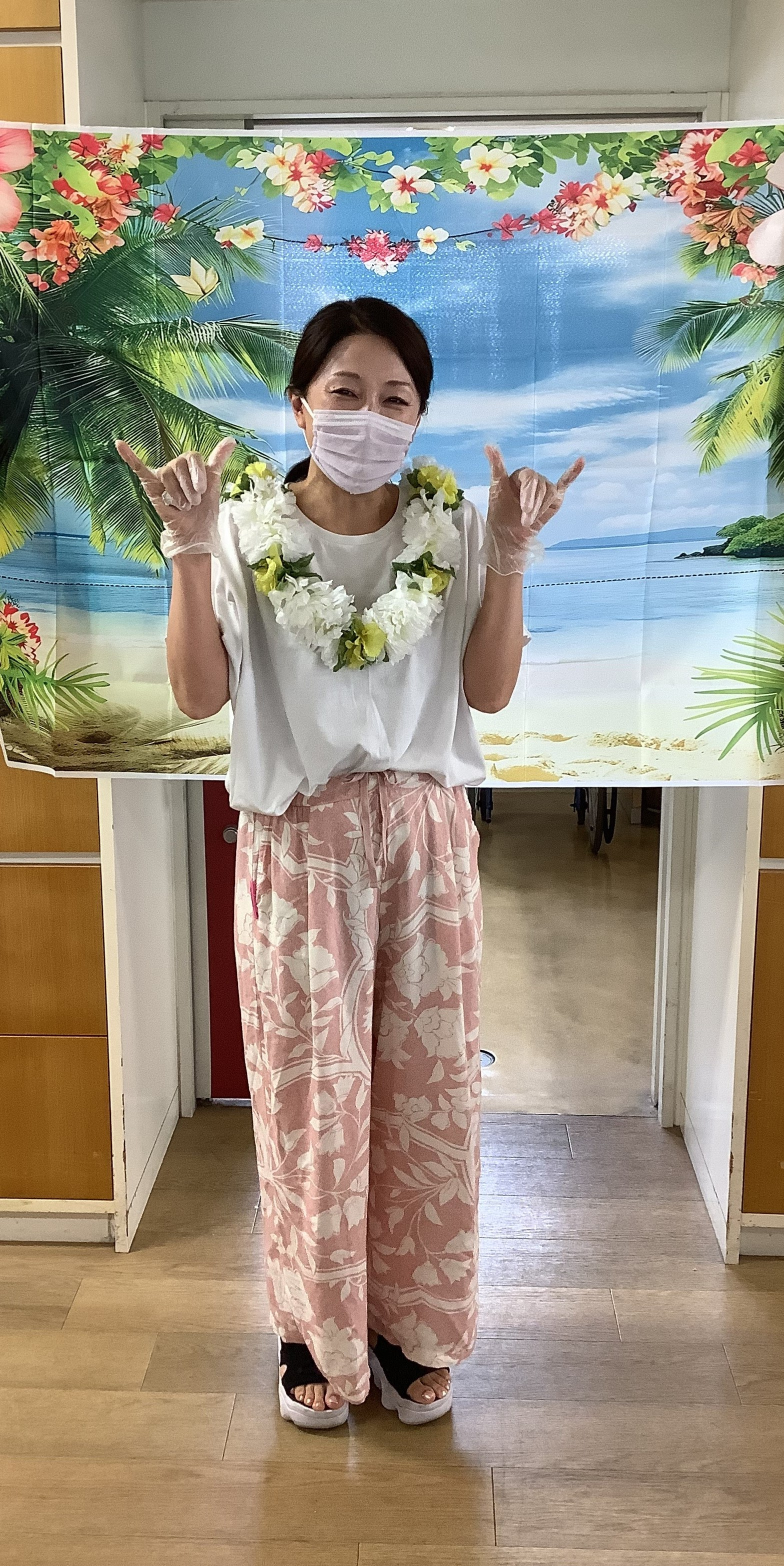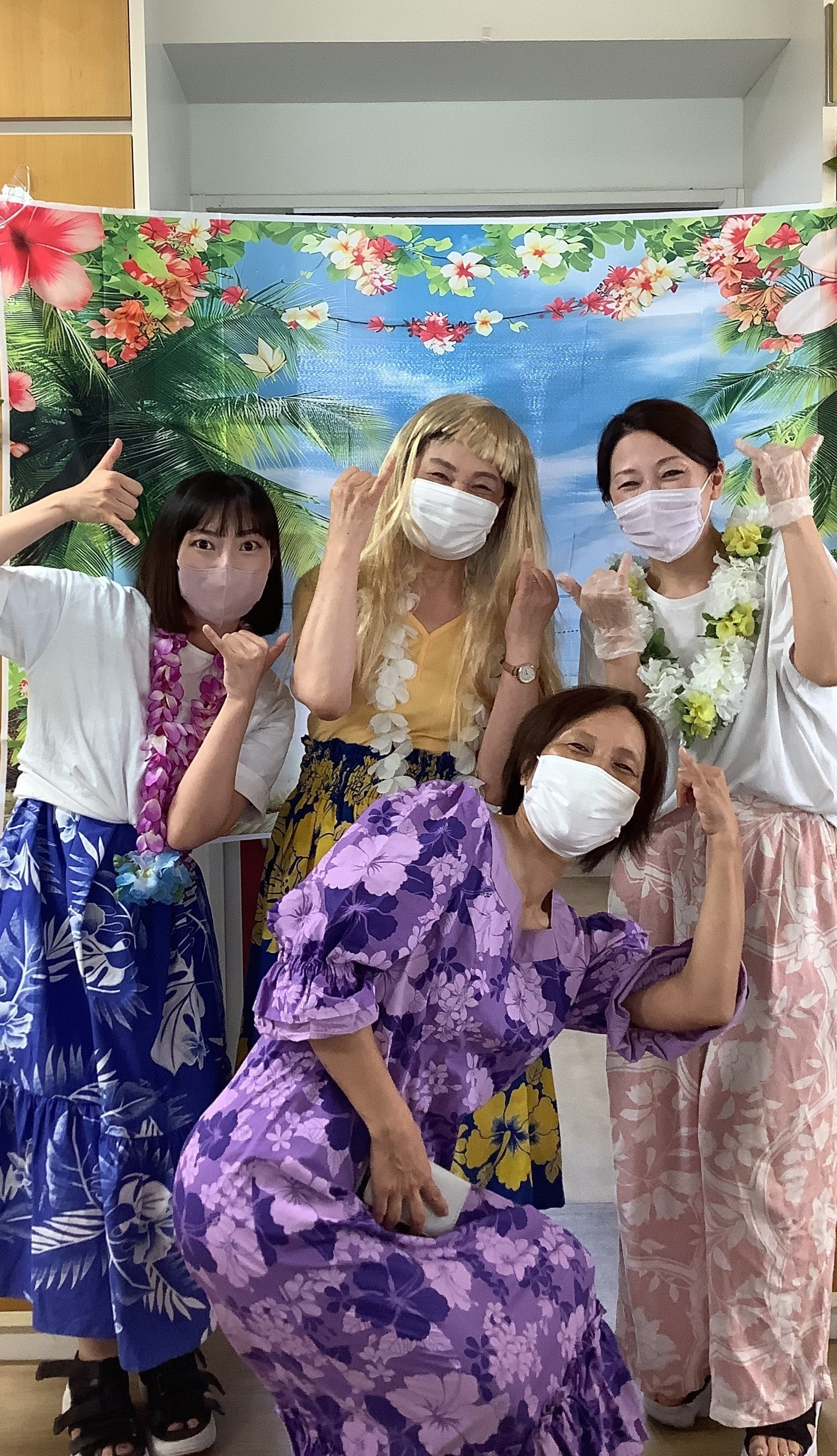 ということで!!!今回は職員のハワイアン服装紹介です!!