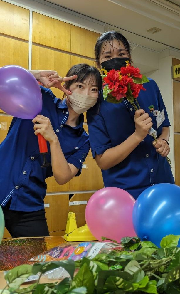 フロアも華やかになり、一気にハワイアン感でてましたー!!風船は割れないように慎重に、、、、。