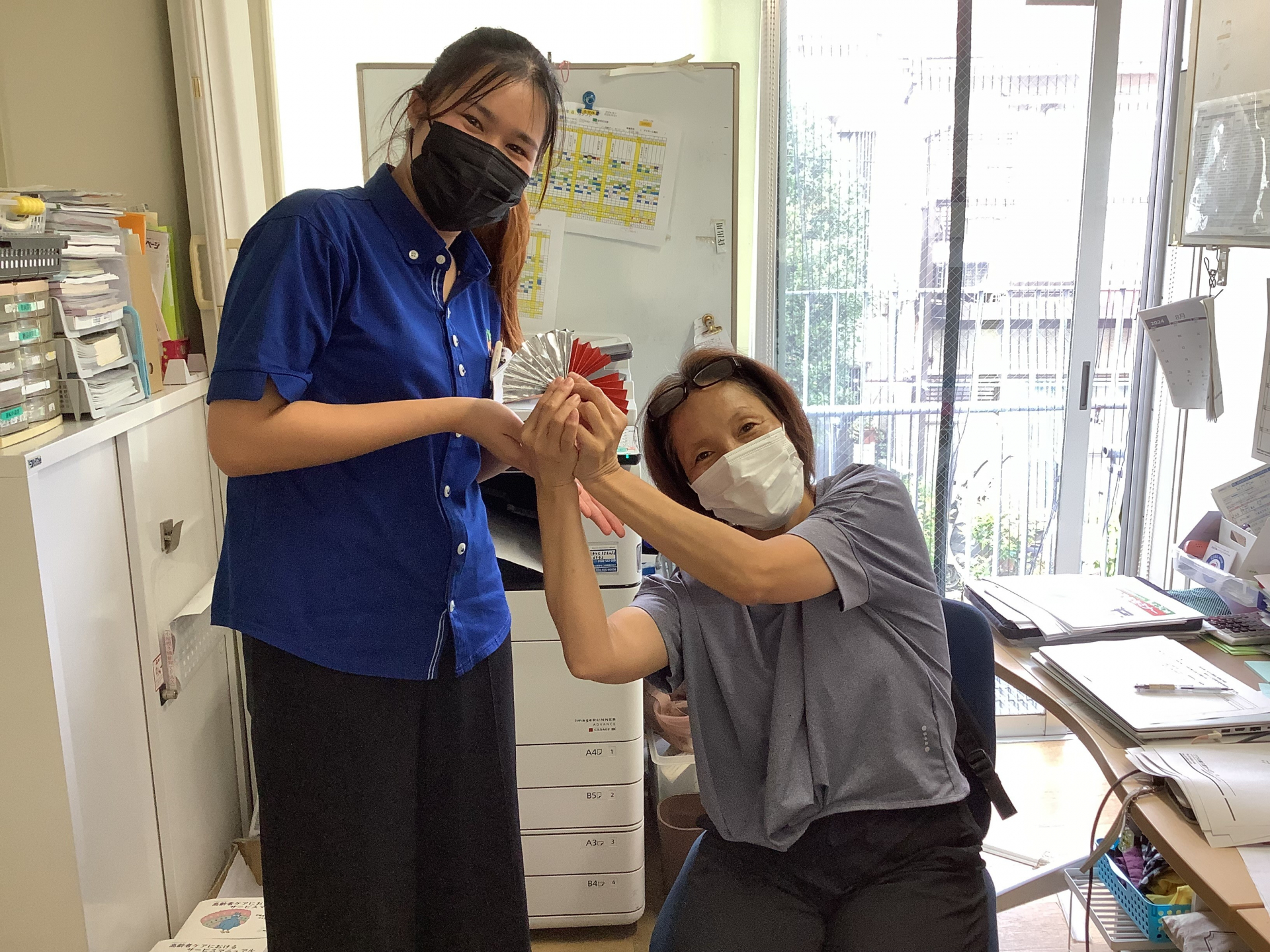 なにやら敬老会に向けて、作戦会議をしている責任者とW職員!!
