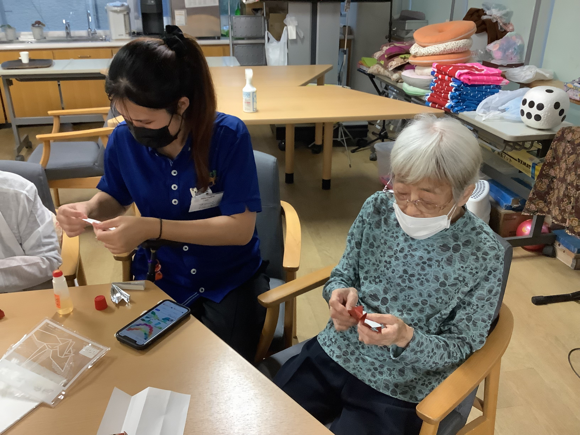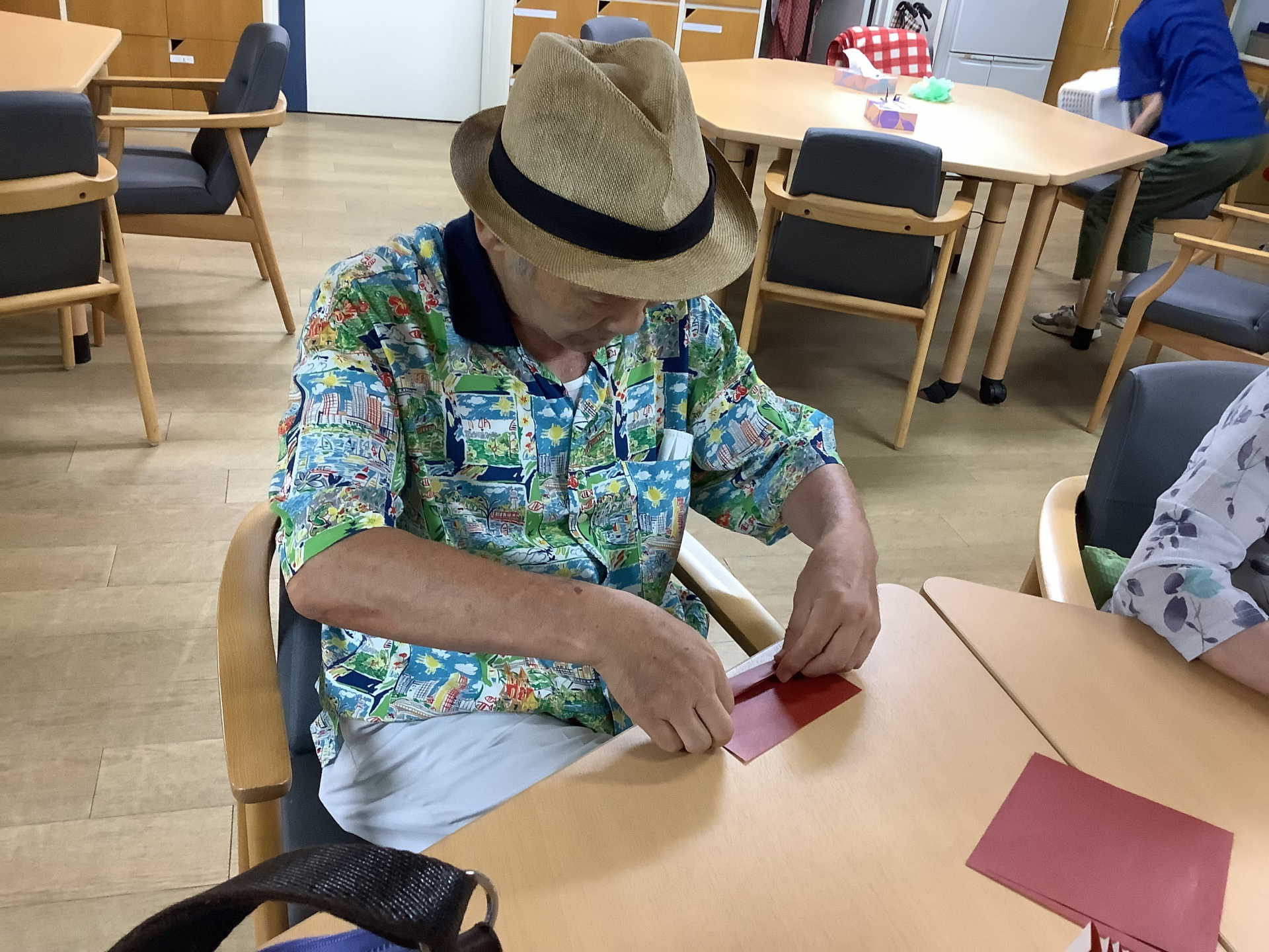 フロアの装飾品を折り紙で作ってくださっています!!綺麗な折り紙で蛇腹織をして何を作っているのでしょうか?まだ内緒です!!