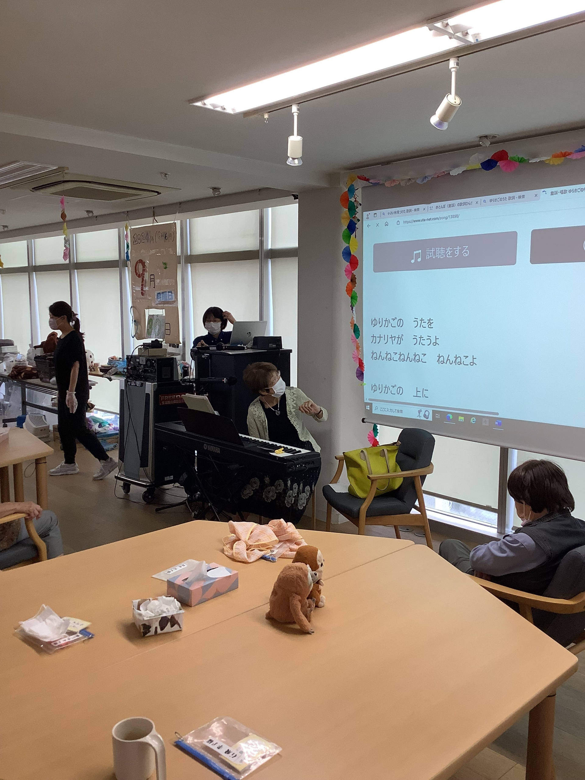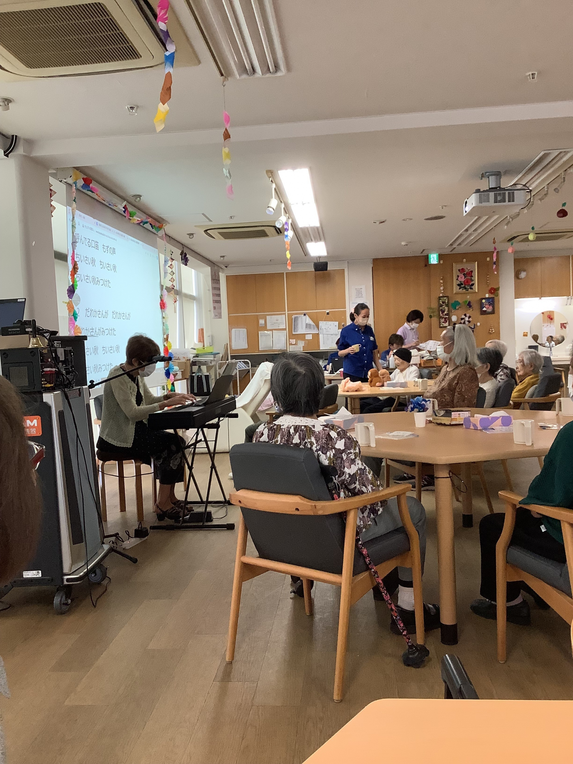 1時間たっぷりとピアノの音色に合わせ、女性の元気いっぱいの声、男性の力強い声で歌っていただき、とても明るく元気なフロアで9月を終えることができましたー!!