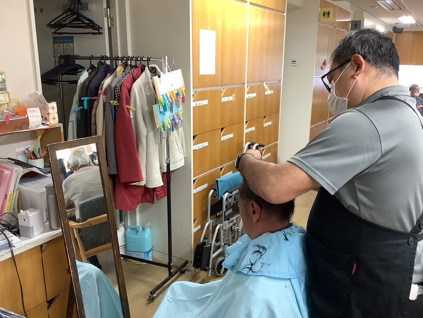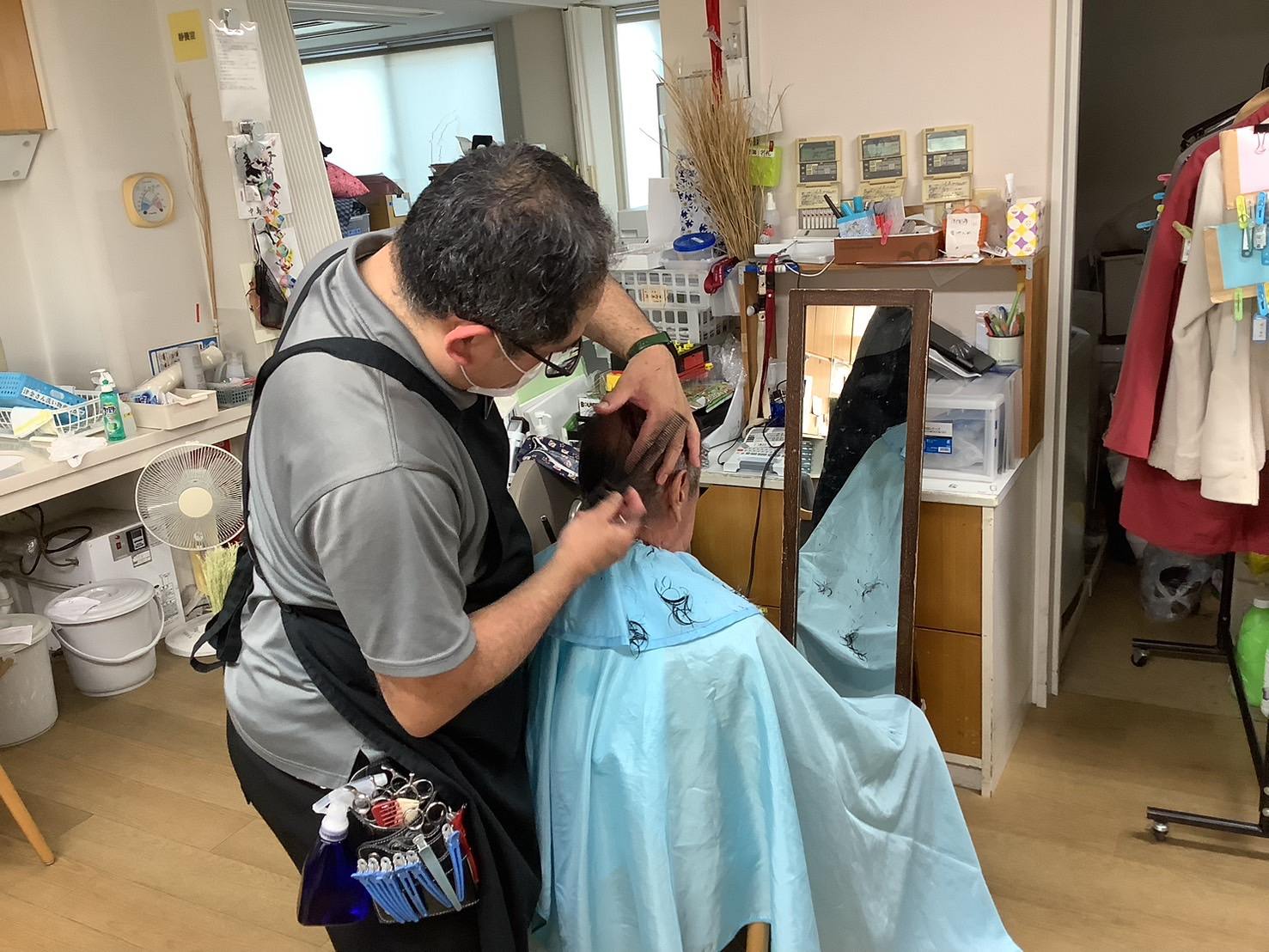 月1の訪問美容師さんの日にスッキリしたいという利用者さんが髪を切られました