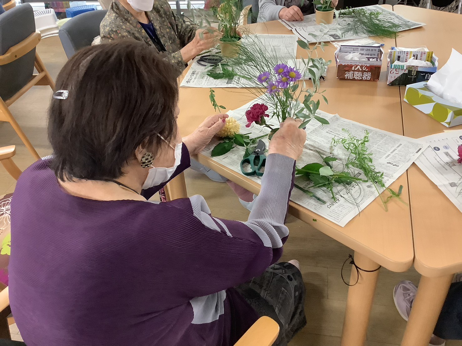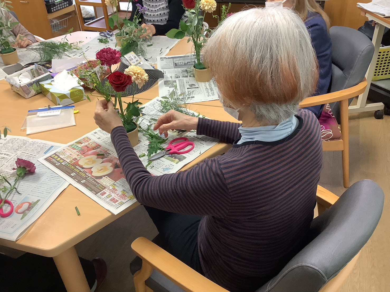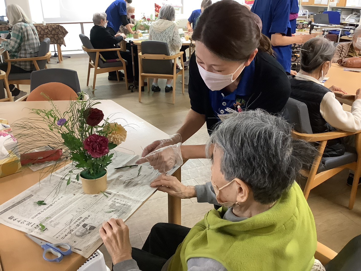 ですので、今日の午後のプログラムはそんな鬱々とした気分を吹っ飛ばすためフラワーアレンジメントを開催しました🌼