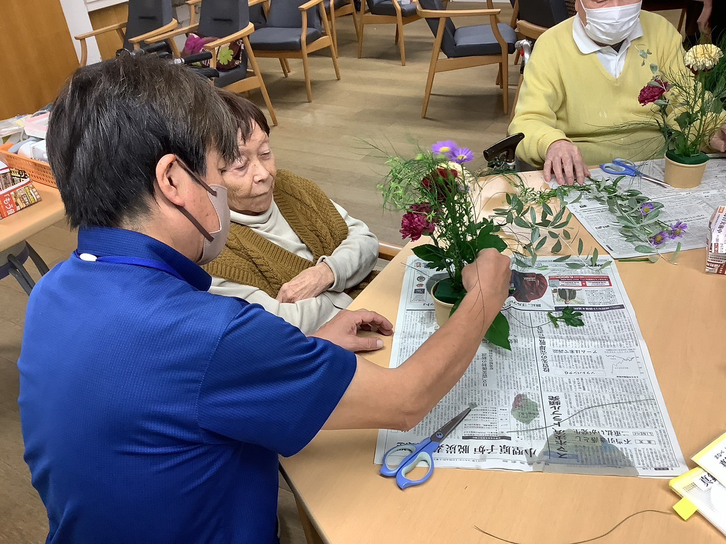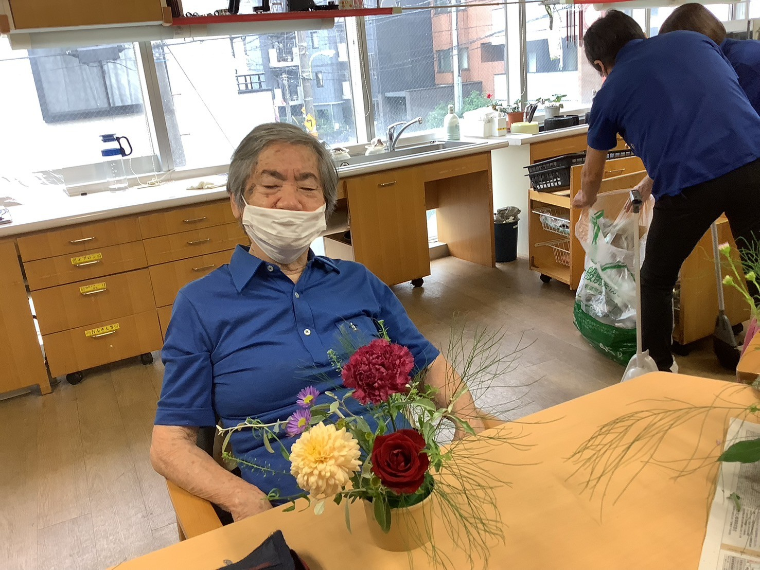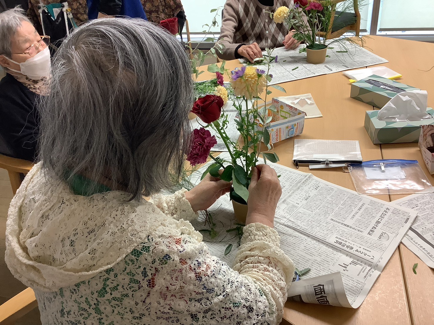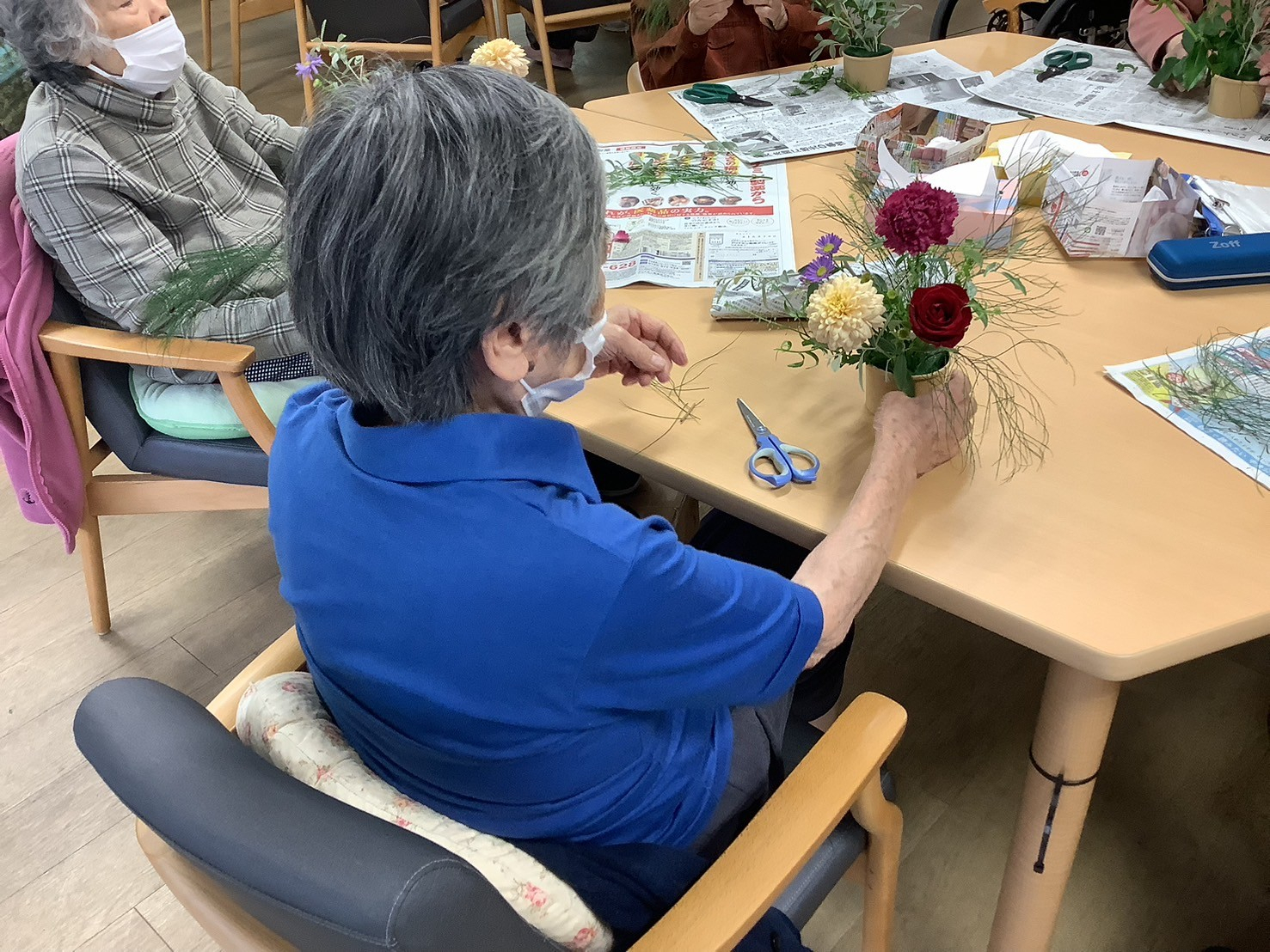 ですので、今日の午後のプログラムはそんな鬱々とした気分を吹っ飛ばすためフラワーアレンジメントを開催しました🌼