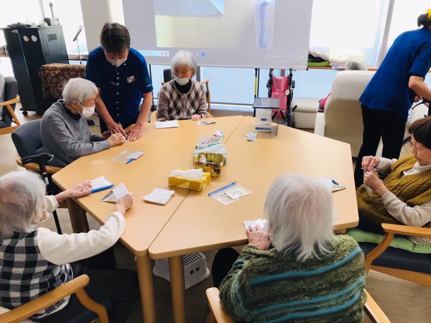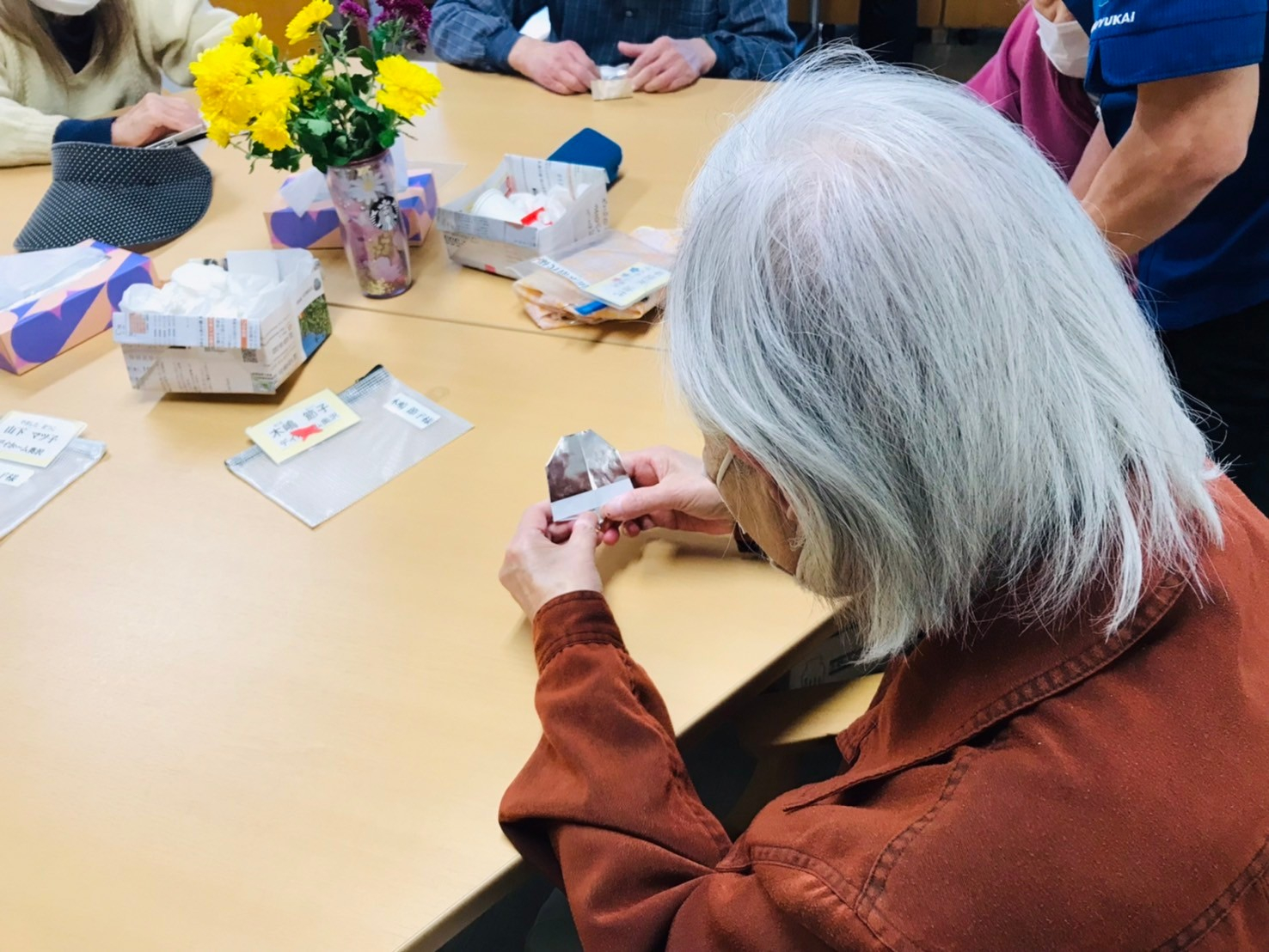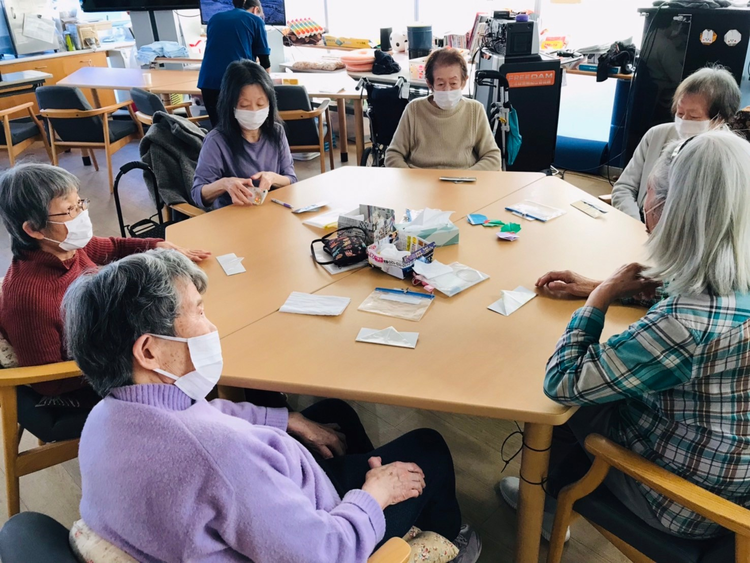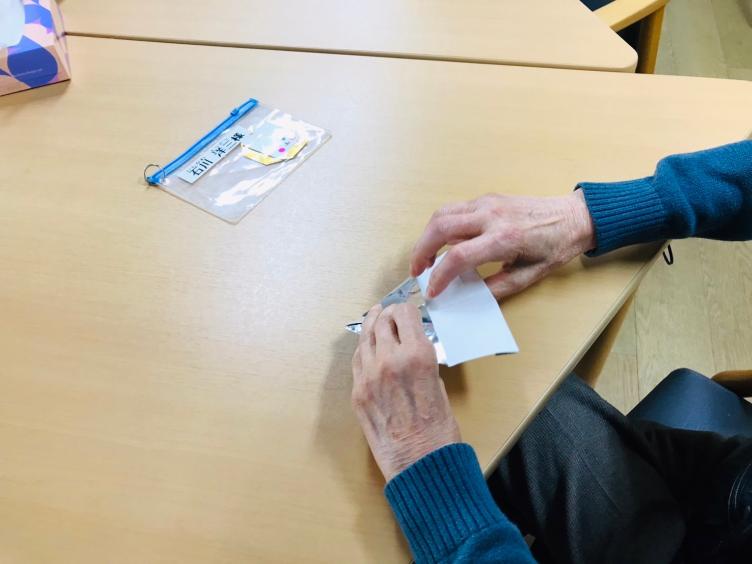 今日の担当職員から他の職員も折り方を教わって、キレイでかわいいベルを折っていきます