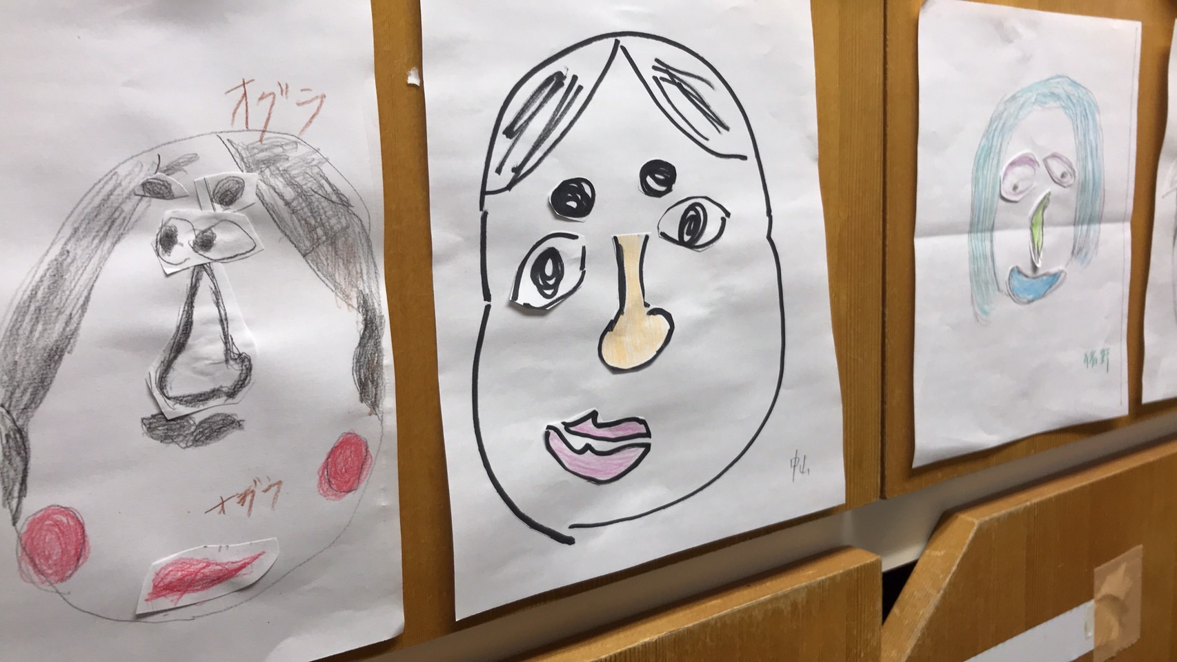 クリスマス前で早いですが、出来上がった福笑いはお正月まで飾ります