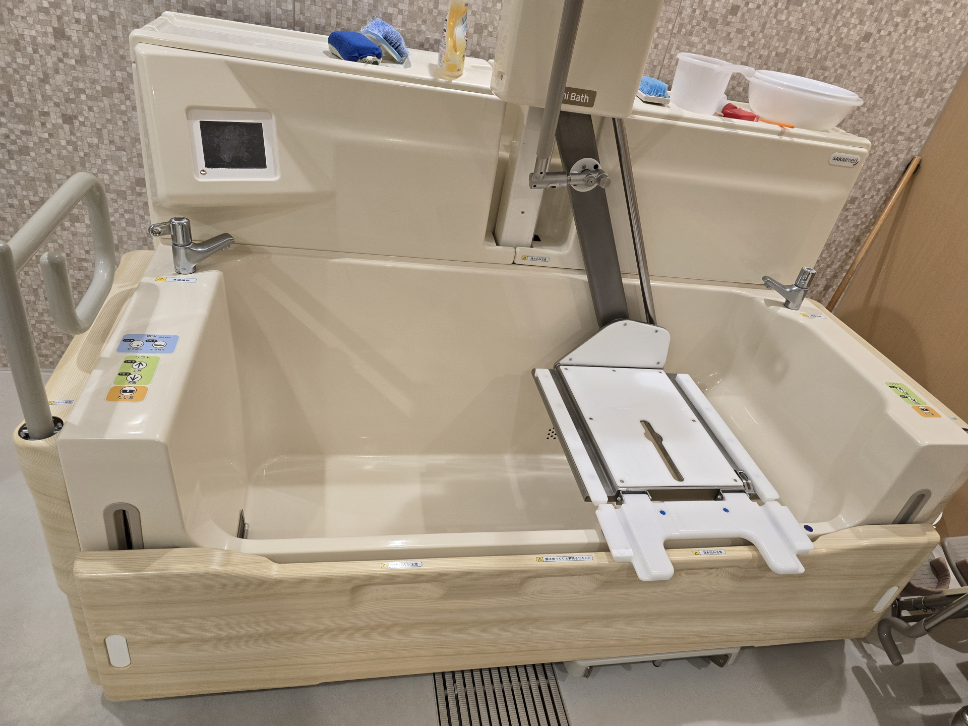 こちらの機械浴は椅子に座ったまま、少し背中を倒し入浴することができます!!