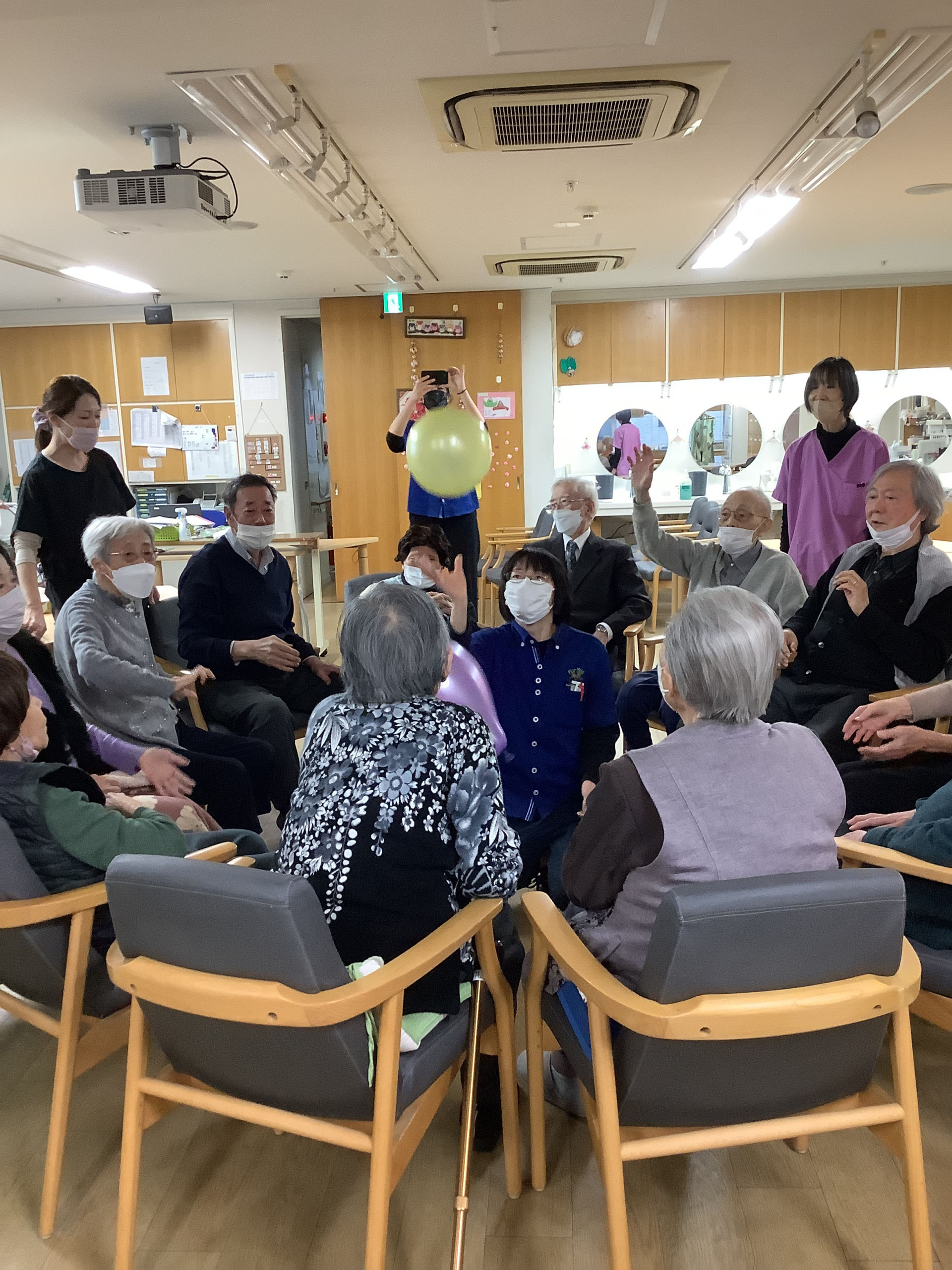 何をしていたかというと、皆で集まって風船バレーを行われていましたー!!