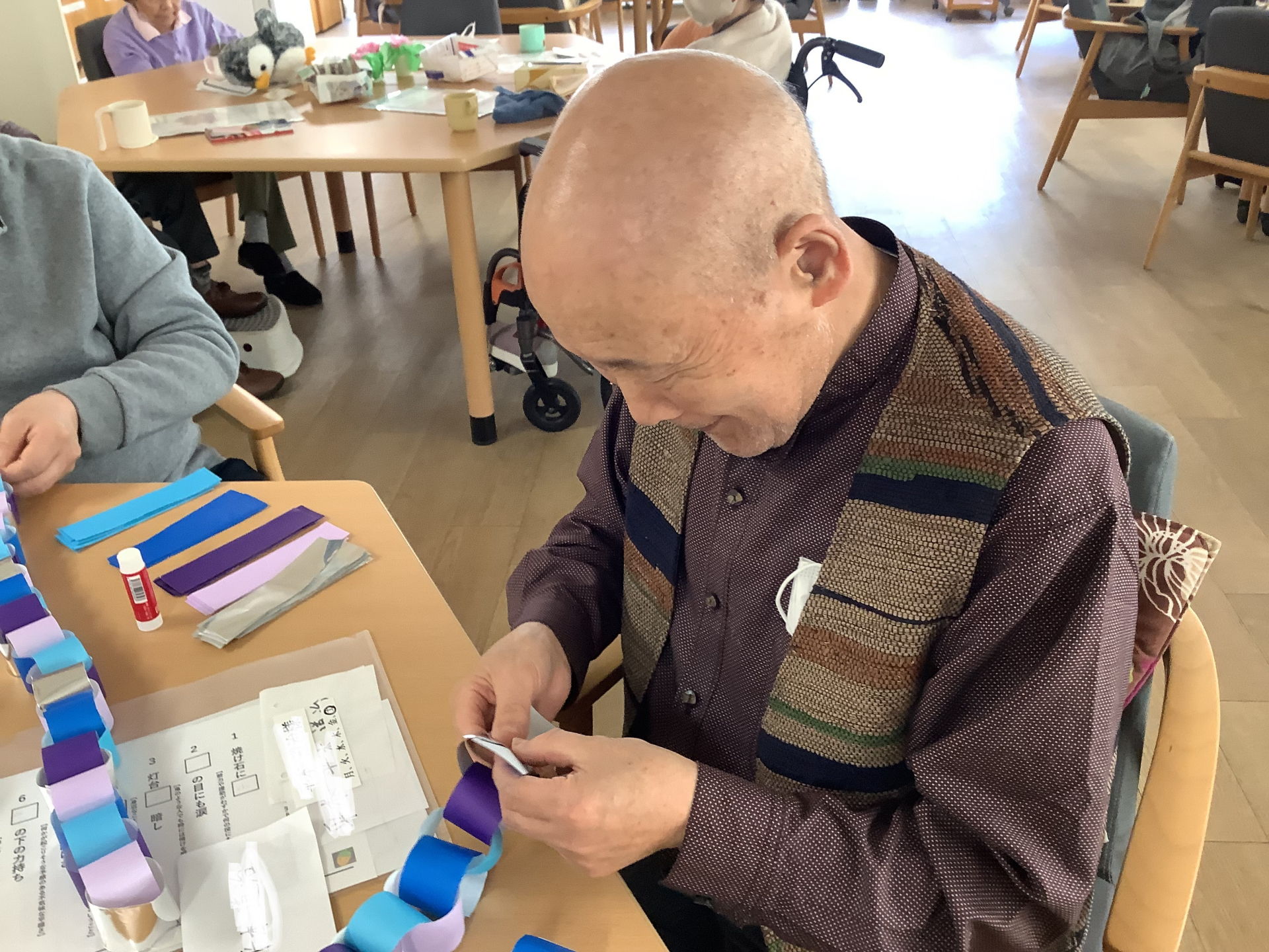 朝から皆さまに輪飾りをたくさん作っていただき、完成した立派な鯉のぼり!!