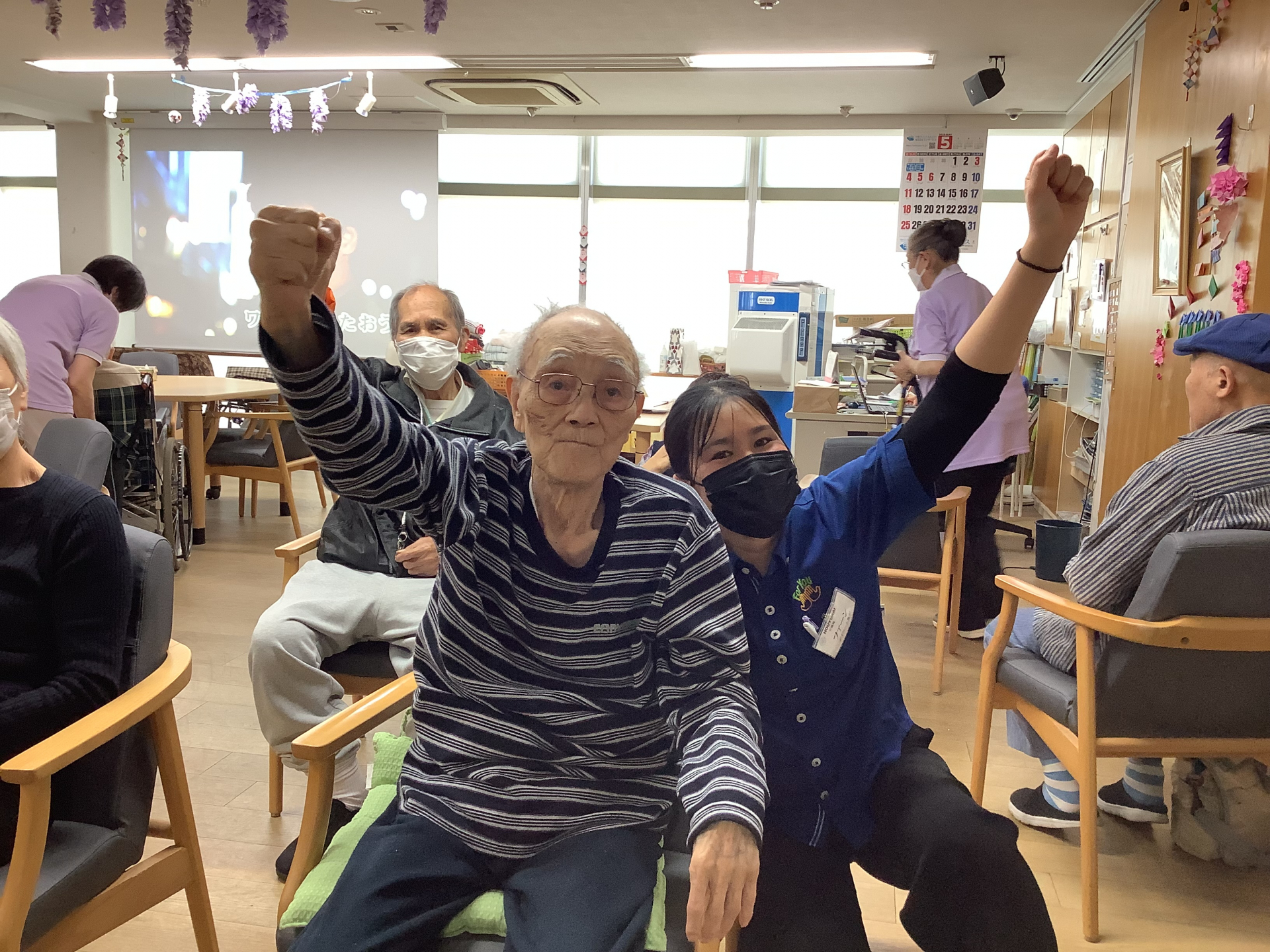 毎日実施している看護師との個別機能訓練体操!!機能訓練指導員の資格を持つ看護師が少人数でやってくださる体操です!!