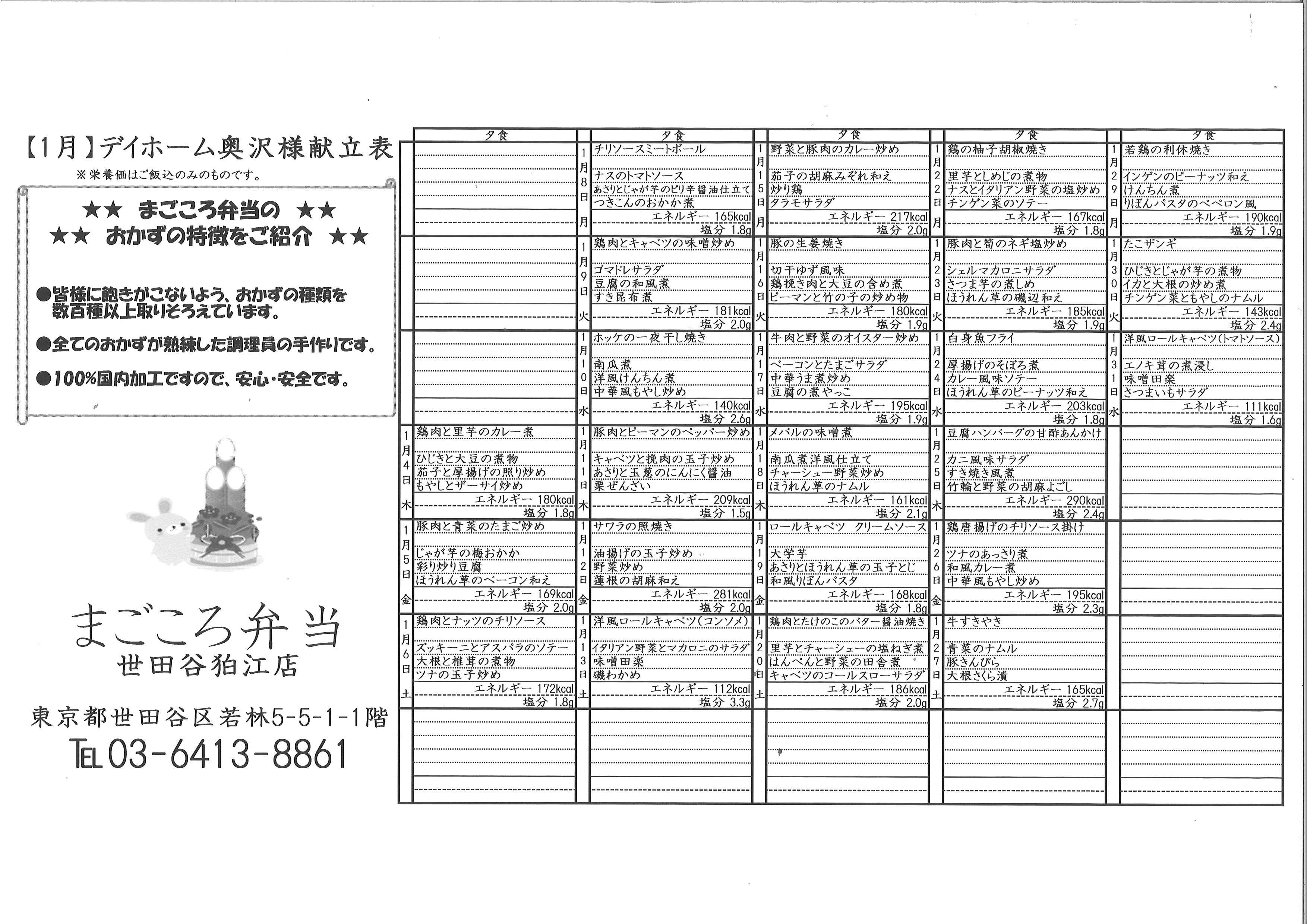 2024.01.05 デイサービス デイホーム奥沢 令和6年1月 夕食&持ち帰りお弁当 献立表 Tweet シェアする 持ち帰り、夕食共に急なご要望にも可能な限り対応いたします。 ご相談くださいませ。 前の記事 2024.01.06 デイサービス デイホーム奥沢 令和6年 新年会 アベトモさん新春歌謡ショー 次の記事 2024.01.05 デイサービス デイホーム奥沢 令和6年1月の昼食 献立表 一覧へ戻る