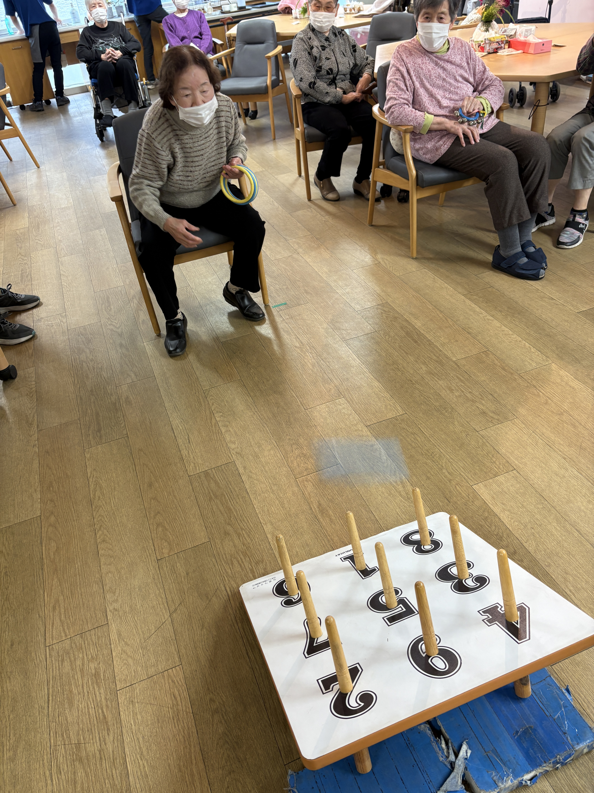 輪投げゲームはこの輪投げを5回投げ、数字のところがそのまま点数になるというルールです‼