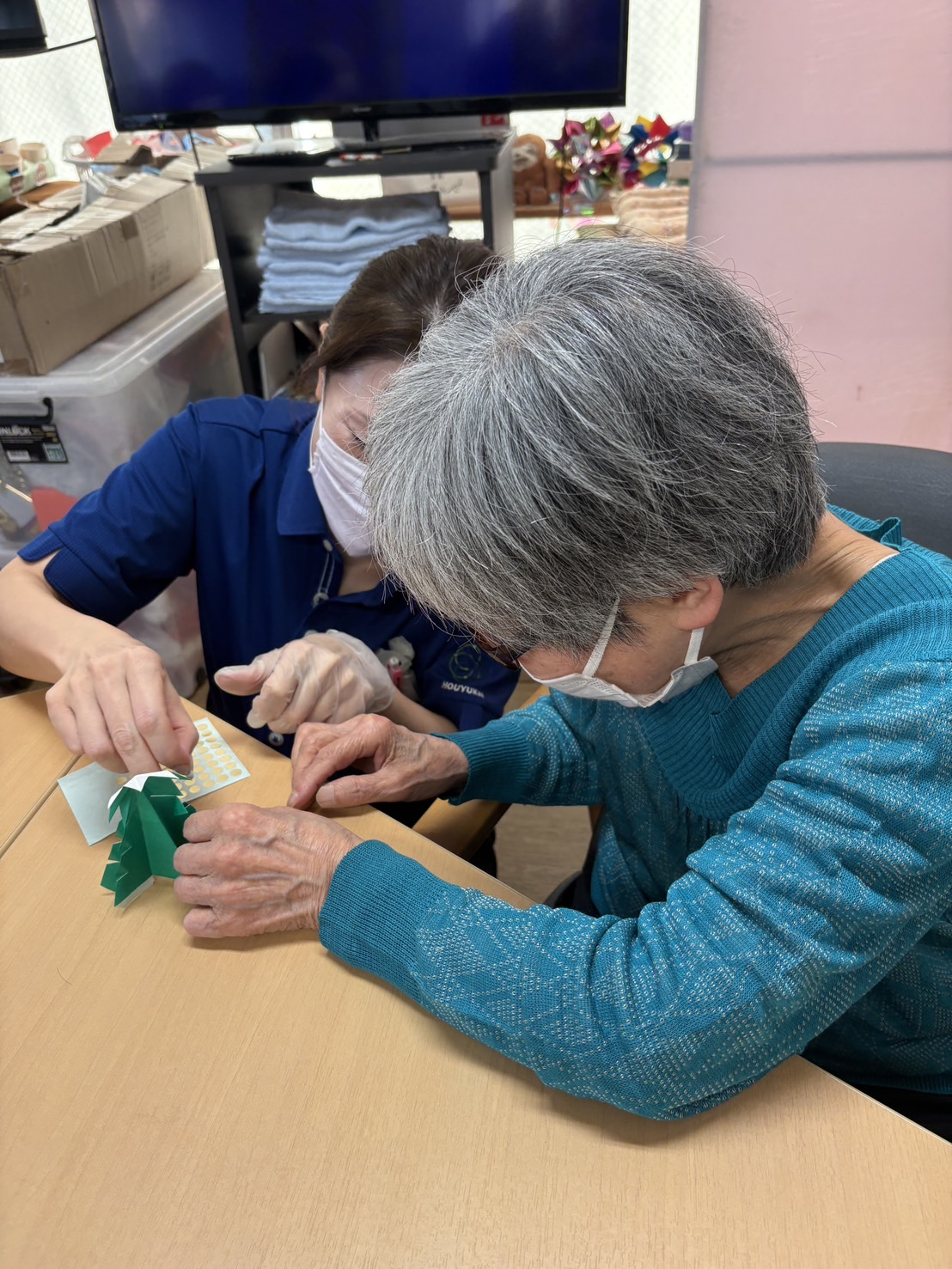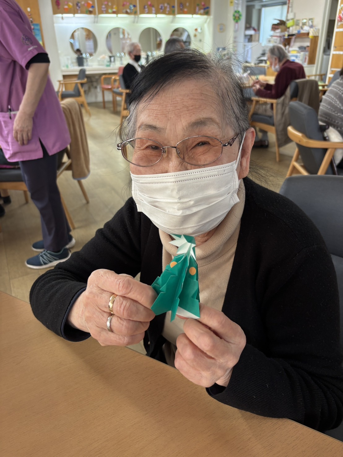 前回のクリスマスツリー飾り付けに続き、折り紙でクリスマスツリーを作りました‼