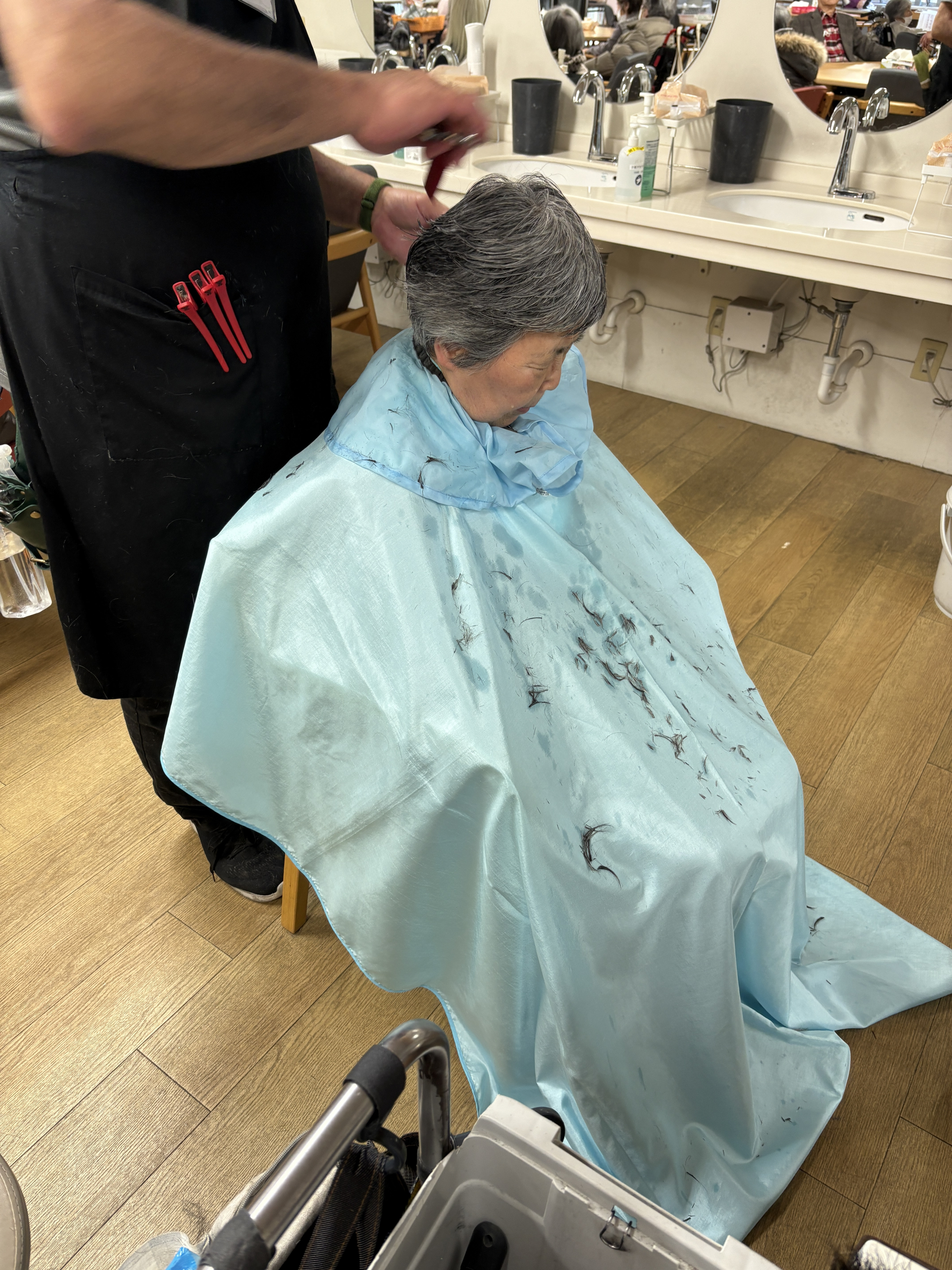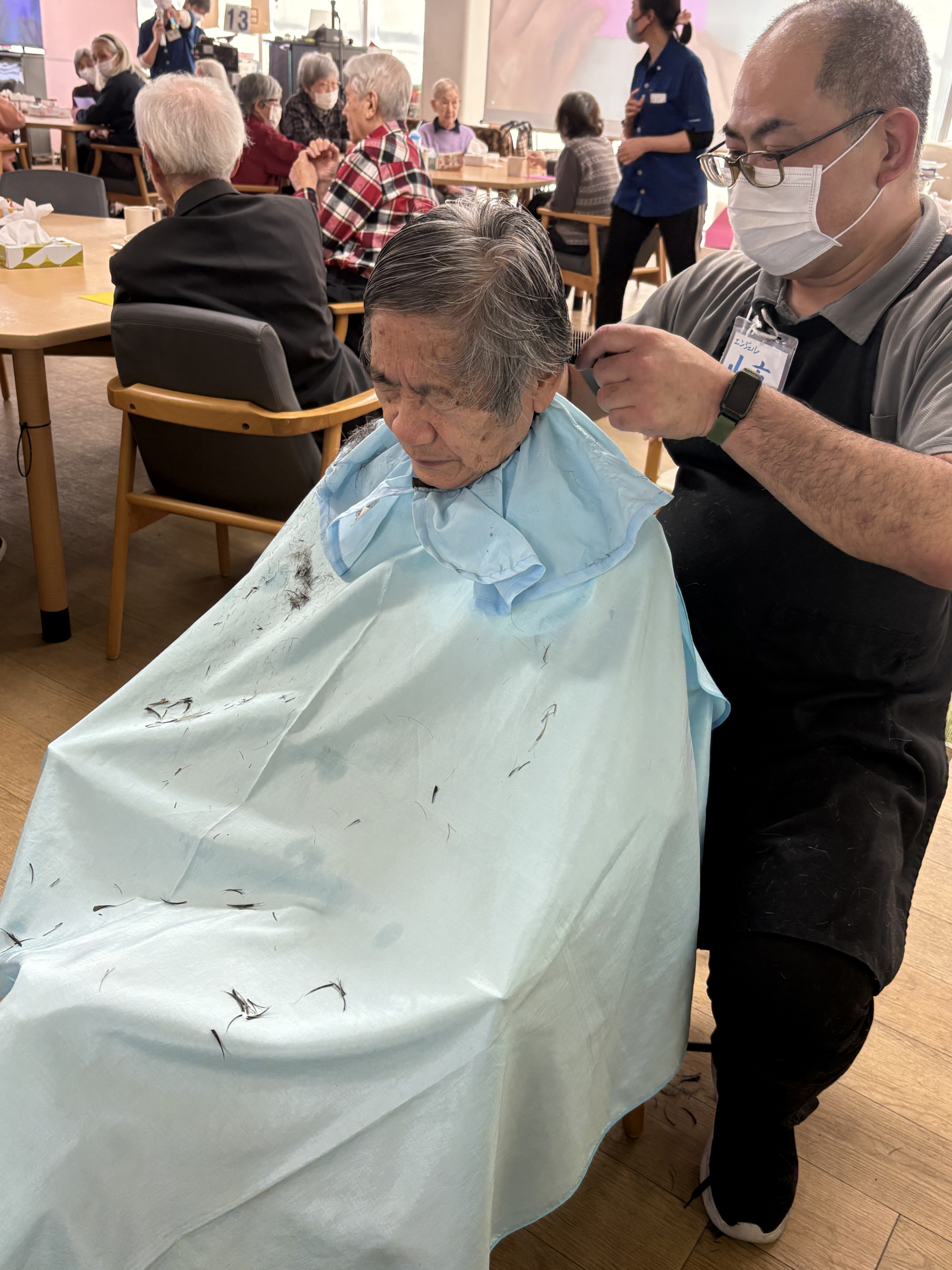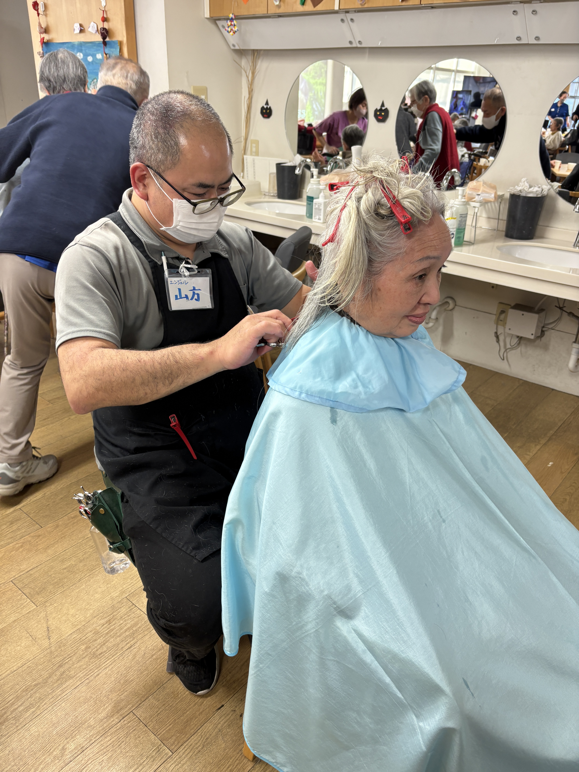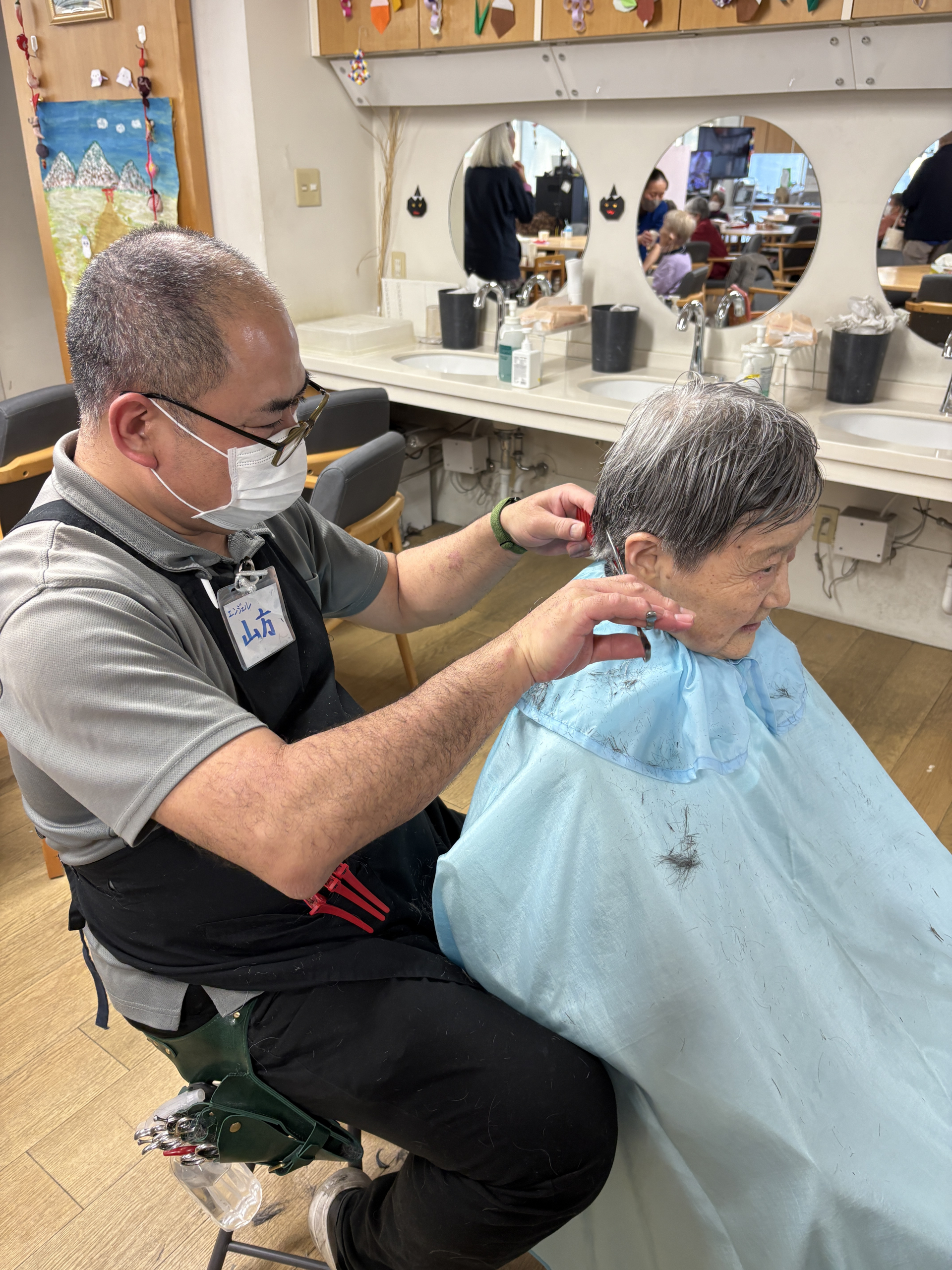 訪問美容師の方が月に1回来てくださり、ヘアカットをしていただきます。