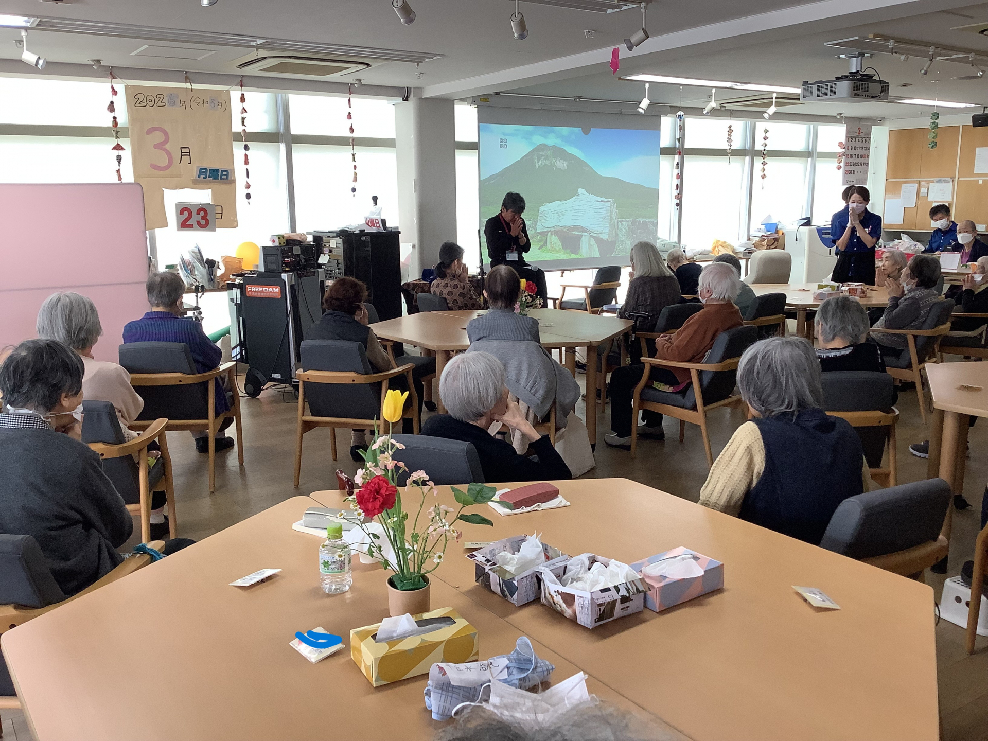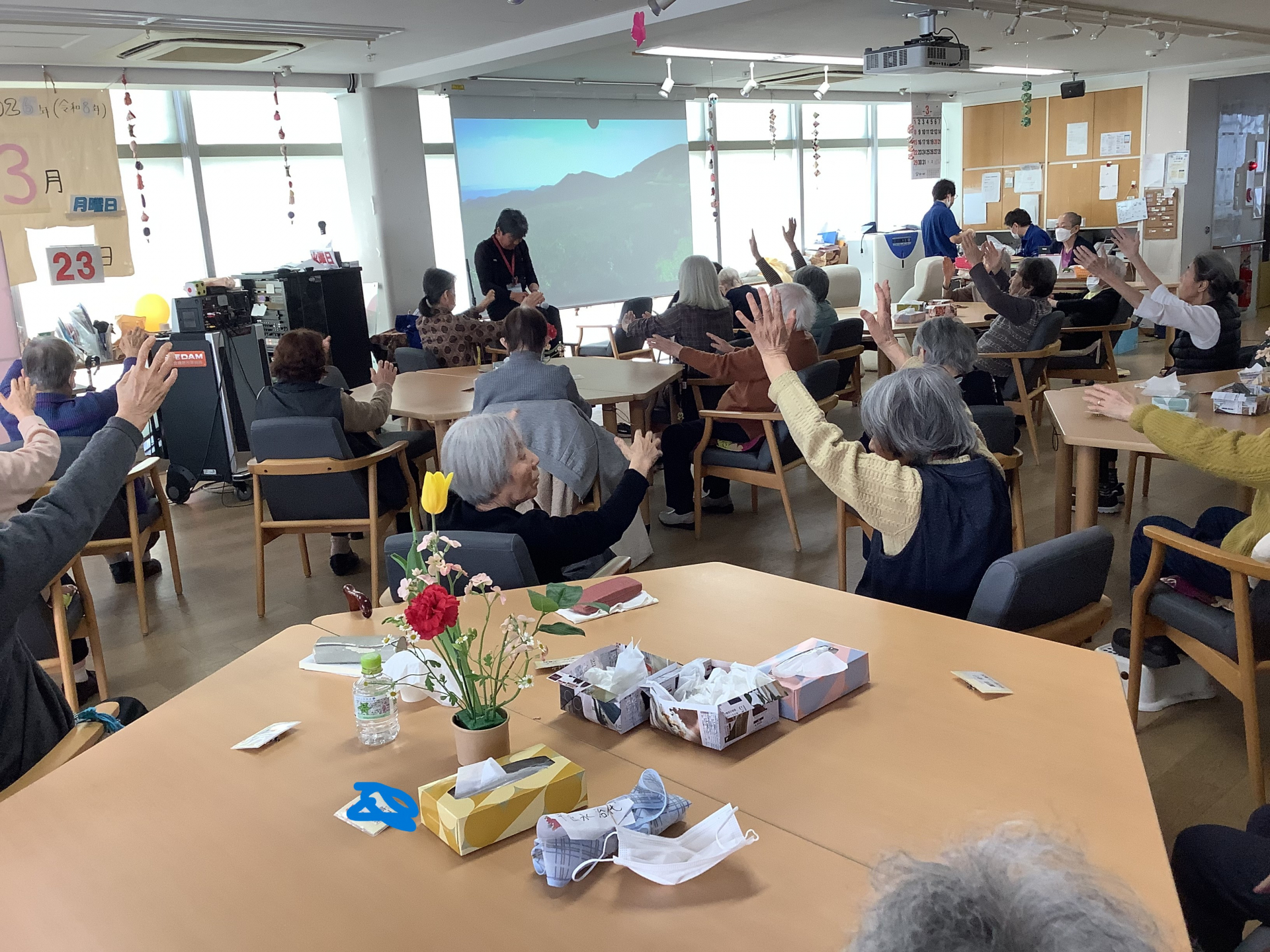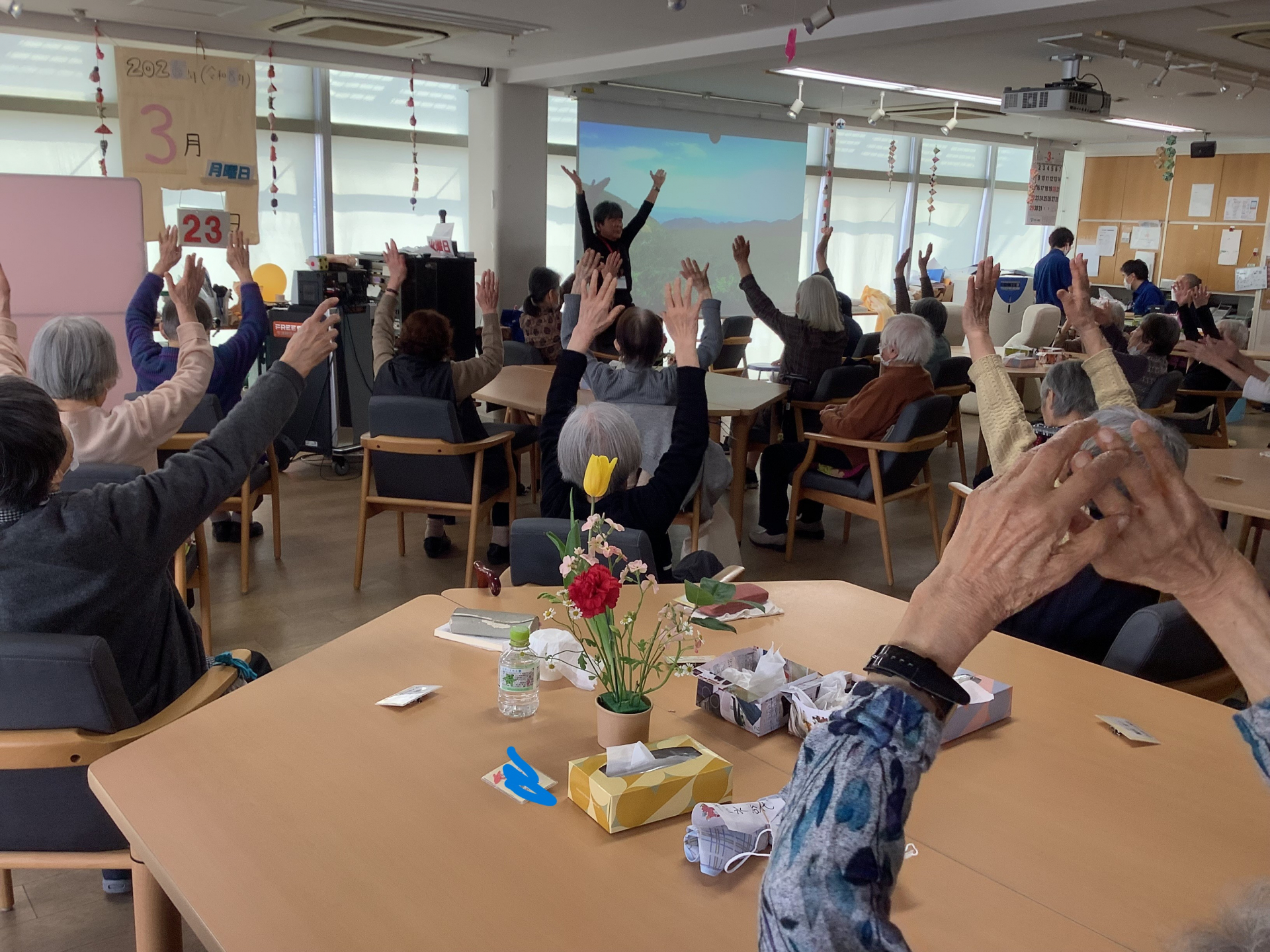 この日はM職員が前に立って体操を行った日です‼