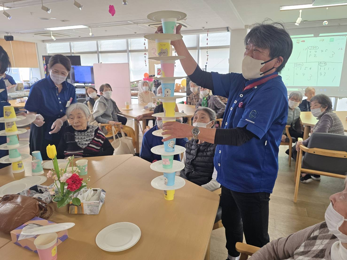 紙コップ、紙皿、紙コップ、紙皿…と乗せていくゲーム‼