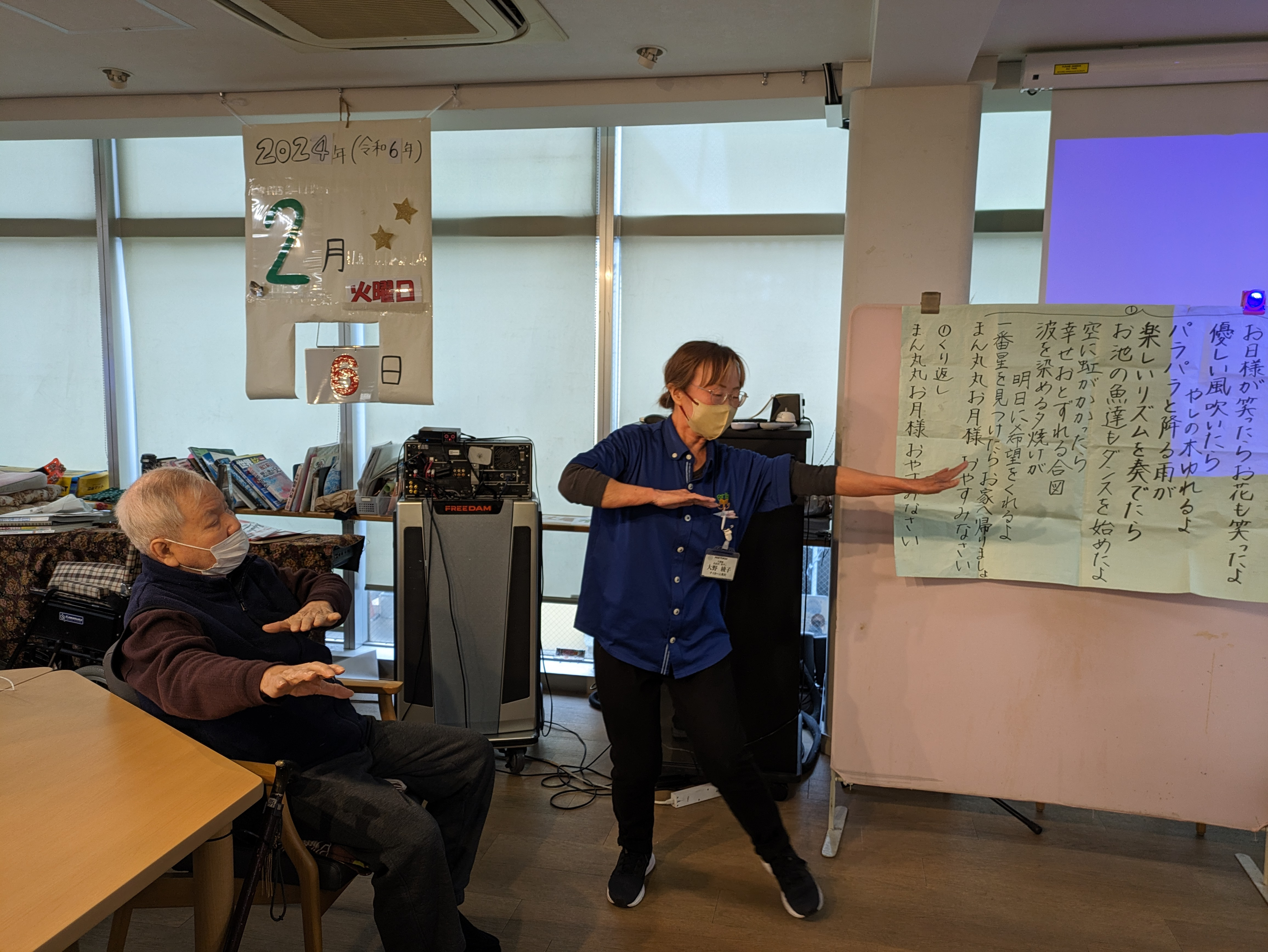 2024.02.06 デイサービス フラダンスの練習です♪ Tweet シェアする お帰り前のちょっとした隙間時間にフラダンスの練習が始まりました!! ご覧になっていたN様も思わず一緒に踊りだしていました(#^^#) 楽し気な夕方のひとときでした♪ 宮本 前の記事 2024.02.07 デイサービス いつもありがとうございます☆ 次の記事 2024.02.05 デイサービス ピアノ&オカリナ演奏会 一覧へ戻る