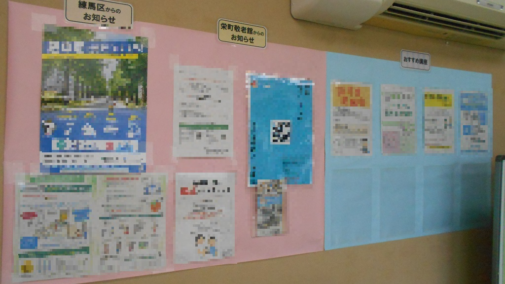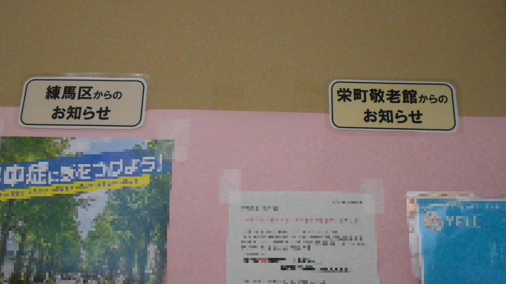 練馬区や栄町敬老館からのお知らせやお願いは左側ピンクの場所に