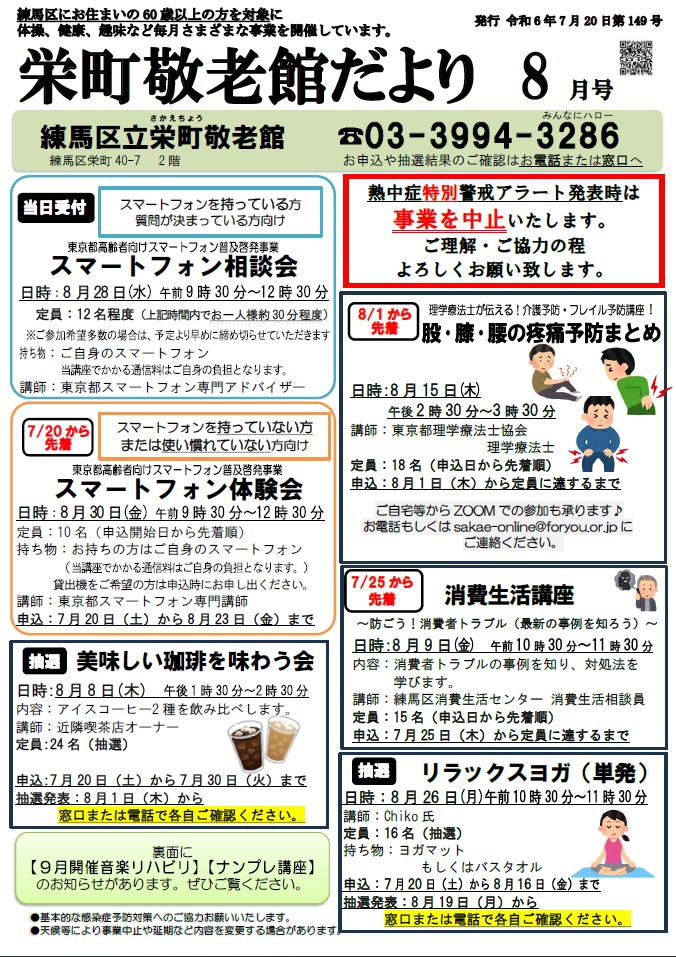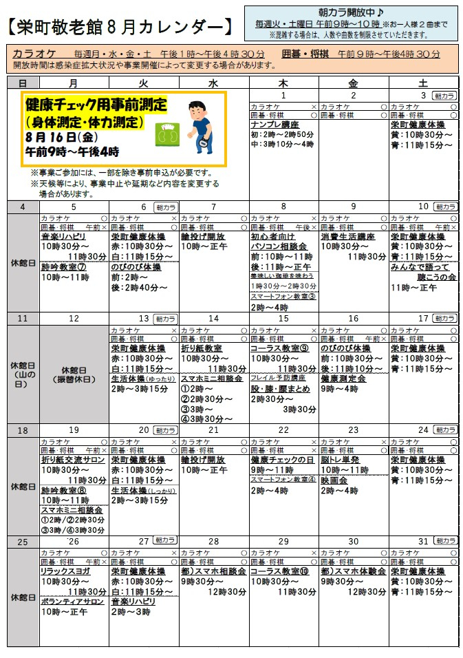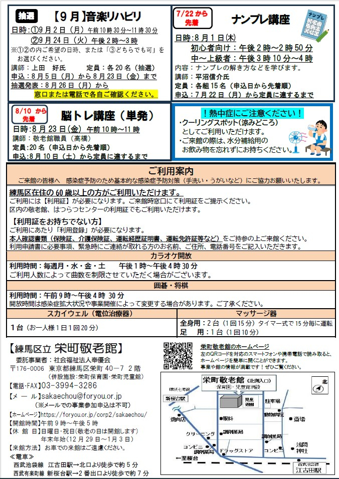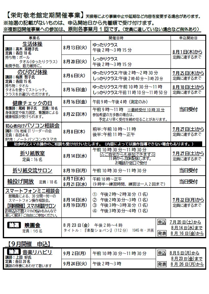 事業に関するお申込みやお問合せは、栄町敬老館までお願いいたします。