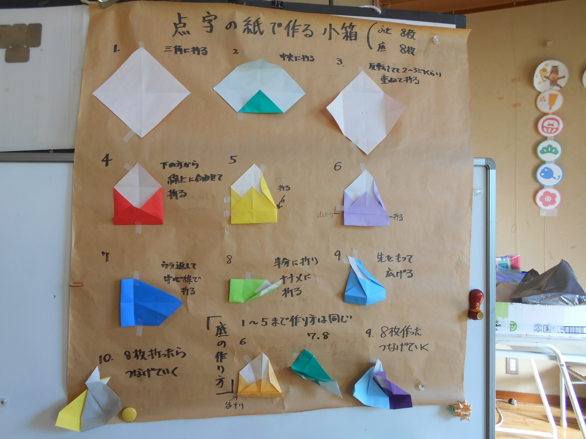 点字用紙は少し硬くて折り紙のようには折れませんが、その分しっかりしていて箱として