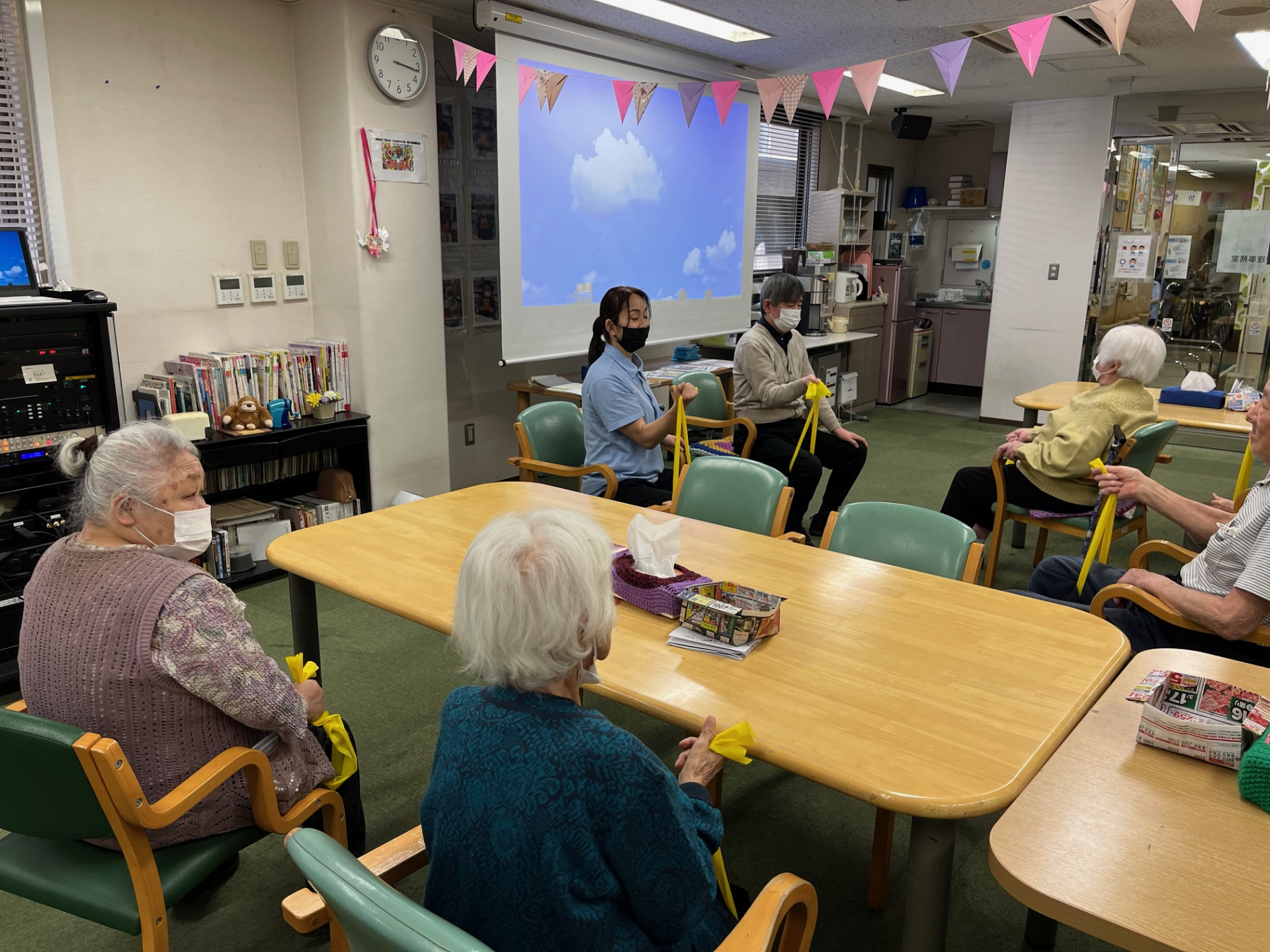 さて、今日の午後の体操はなんと職員と一緒に利用者のA様も先生として前に出て体操してくださいました