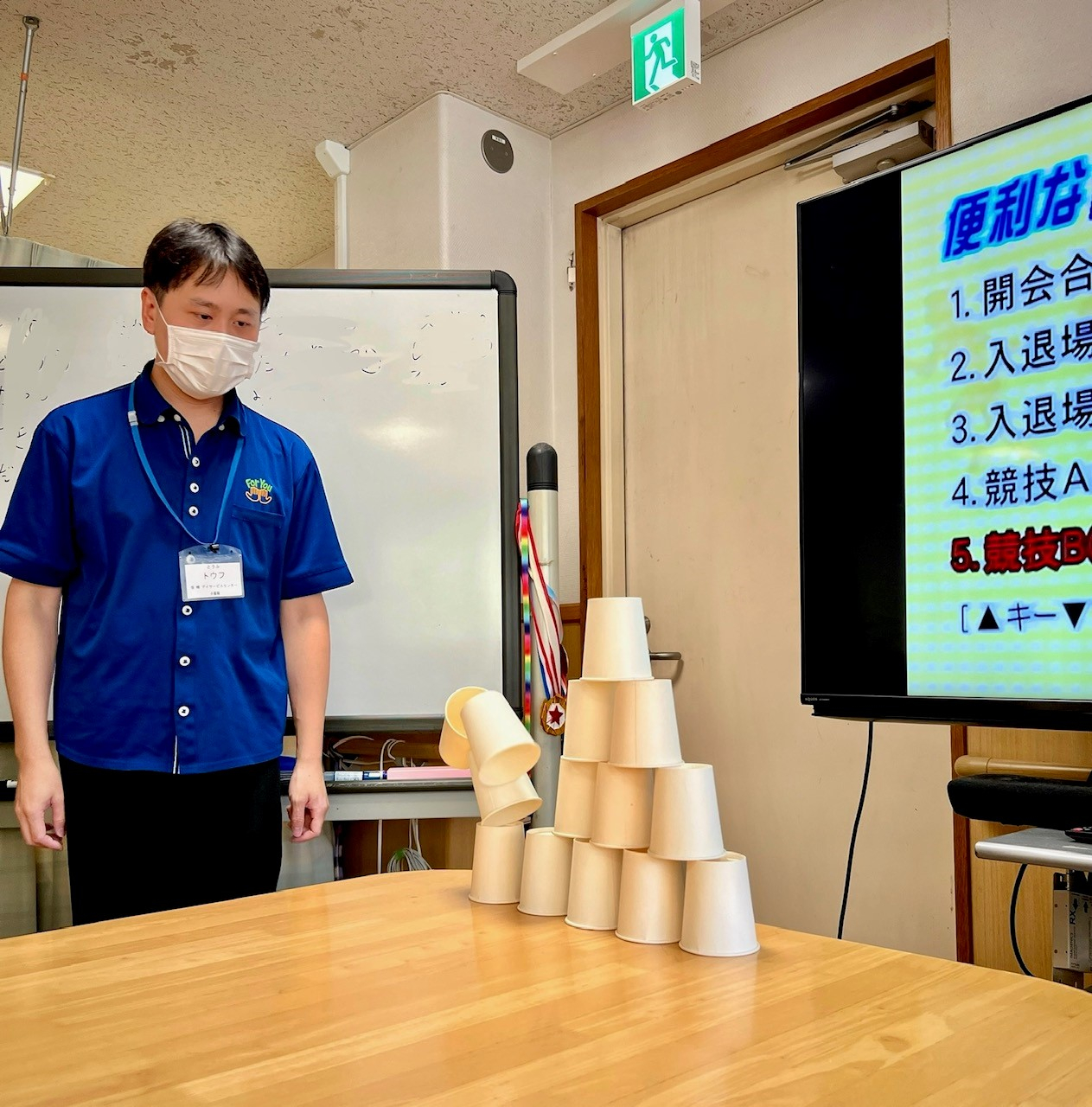紙コップは全部で15個ありましたがトップの方は13個落としました。