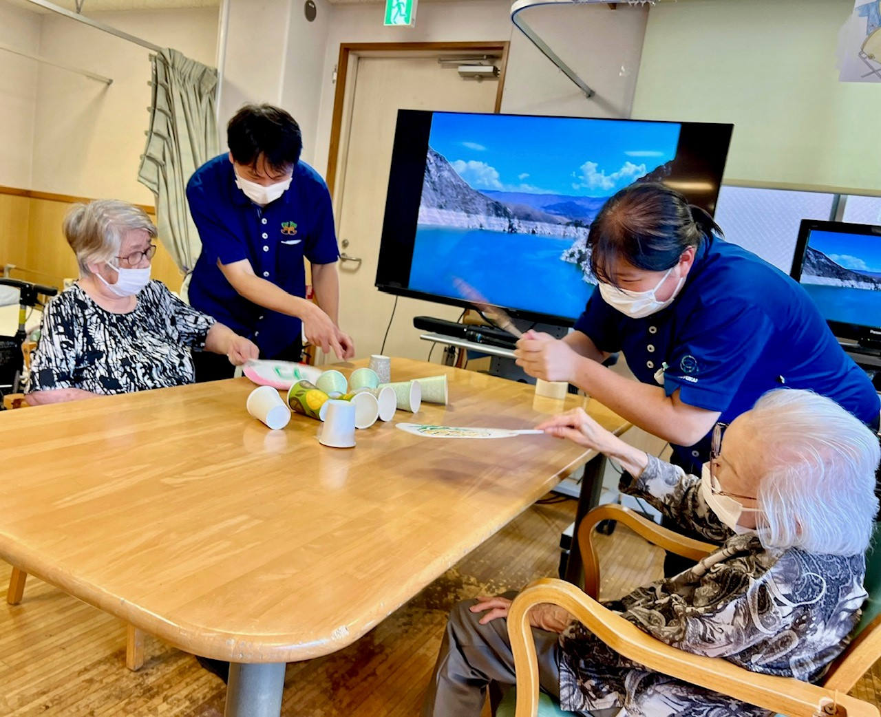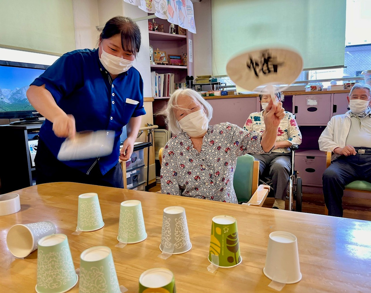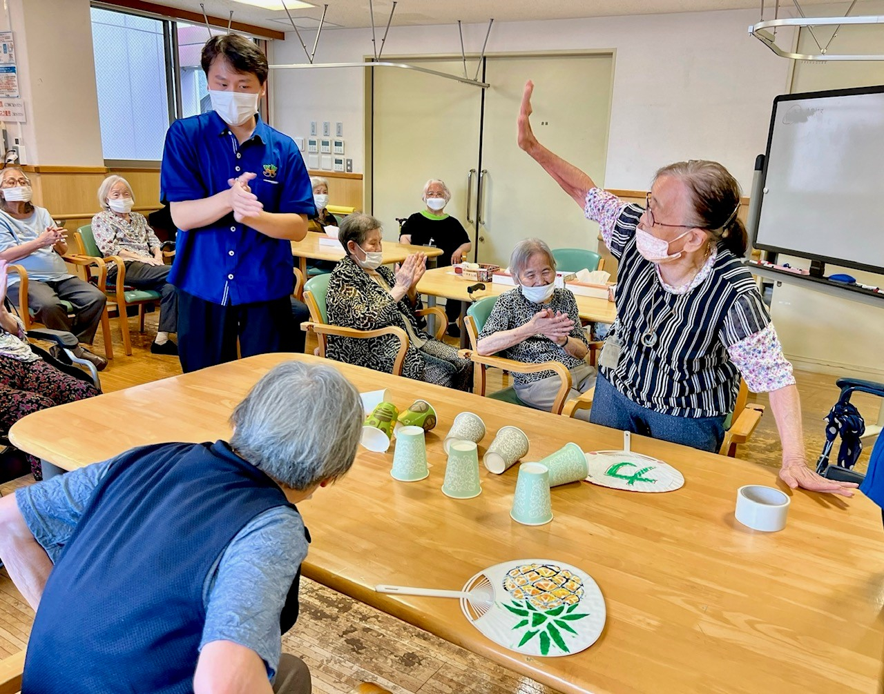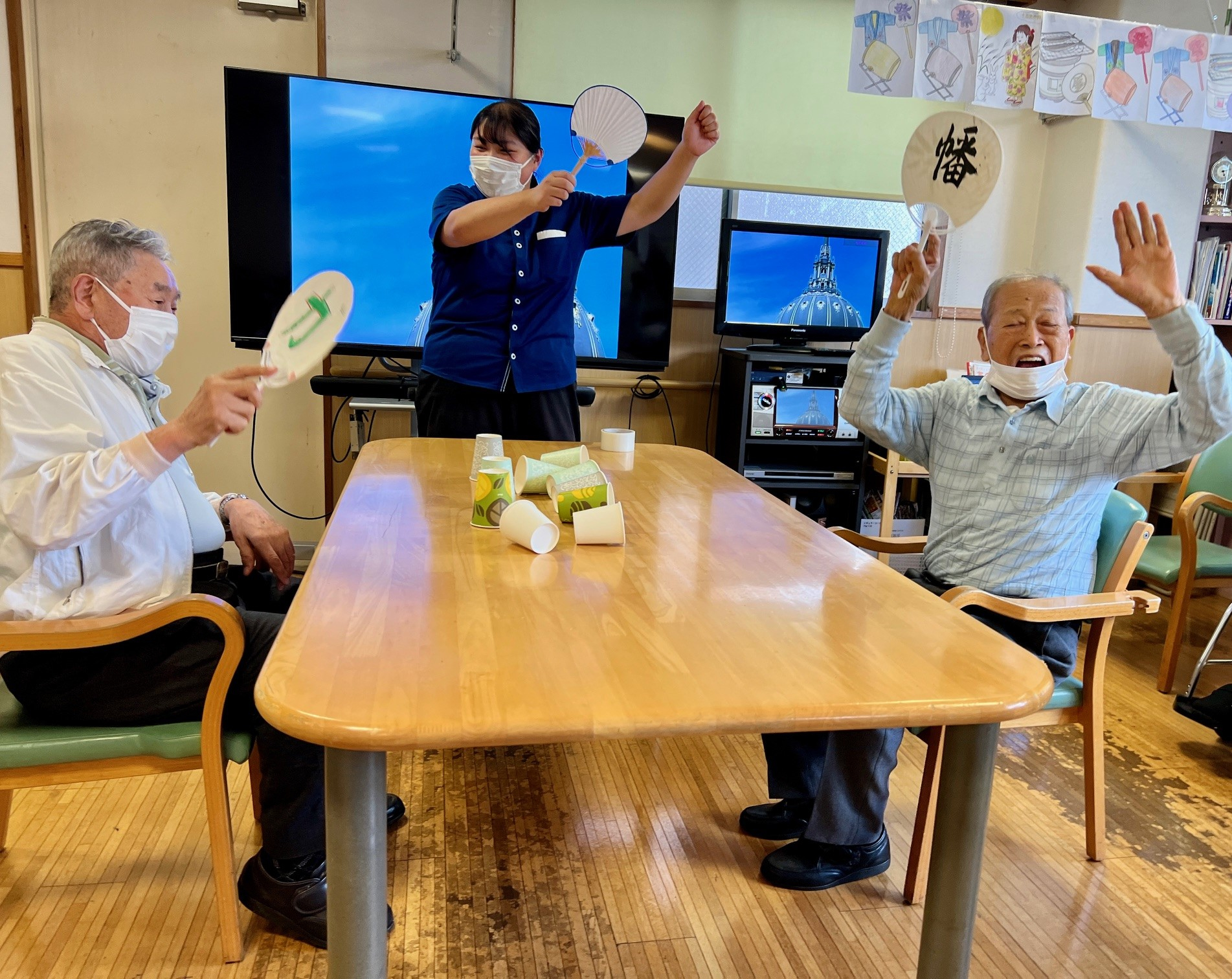 皆様一生懸命うちわを振っていましたが、角度や位置の違いから、時々紙コップがなかなか倒れないこともありました~( *´艸`)