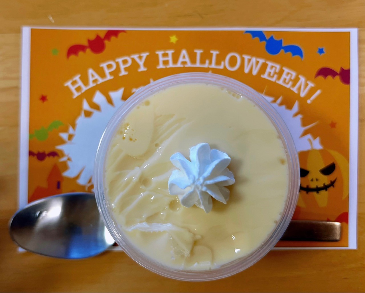 悪魔を追い払った後、ハロウィンイベントでかぼちゃプリンとコーヒーでおやつで締めくくりました。