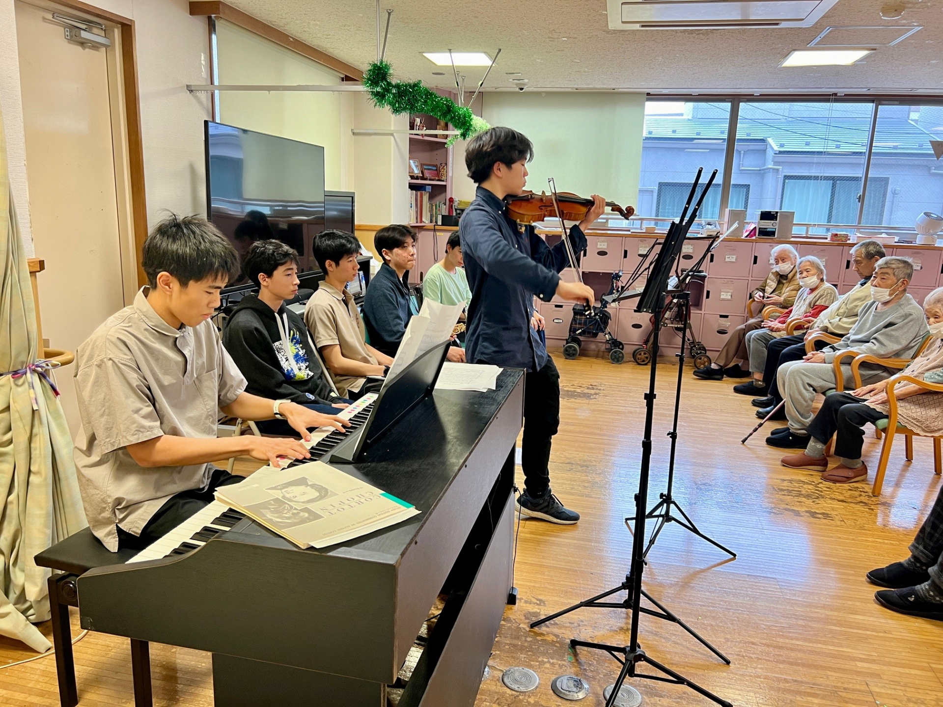 今日は、インターナショナルスクールの音楽学科の学生たちが、笹幡デイでクラシック音楽の演奏を行いました。