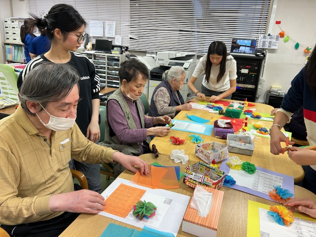 製作中には笑顔での親しい会話が交わされ、最後には皆で記念写真を撮りました。