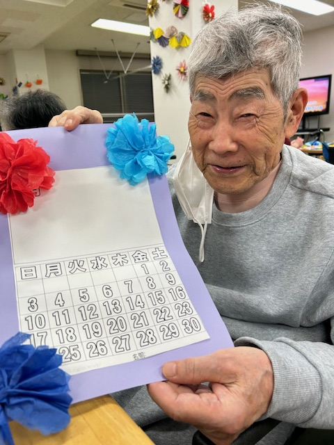 ご利用者様との交流を深めるために小さな活動を準備していました。それは手作りのカレンダーを一緒に作ることです。