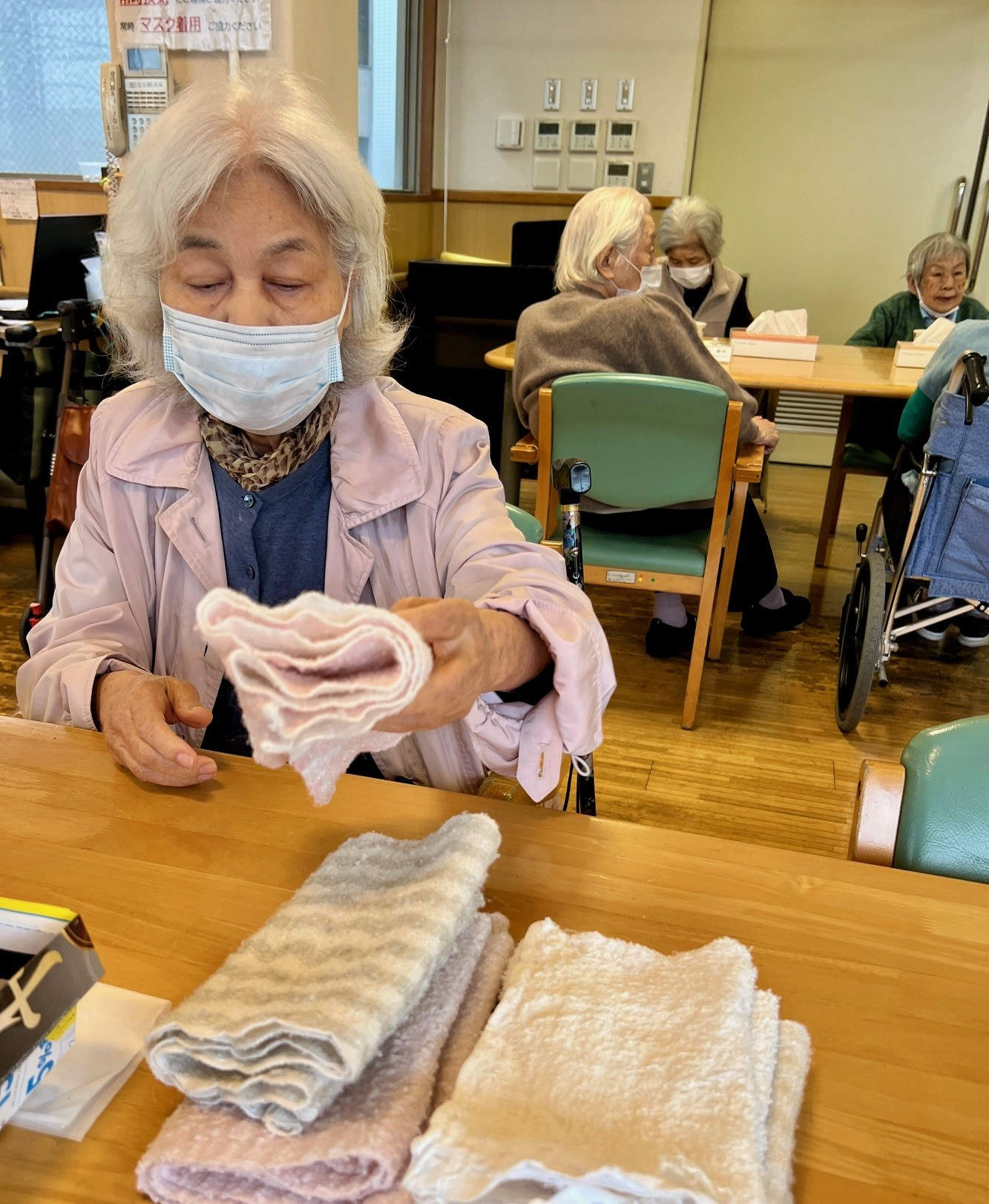 タオルを畳む作業や、雑巾干し等他の軽い活動を通じて、ご利用者様の体調やニーズに応じた形で、身体を動かし、心を前に進めるお手伝いをしています。