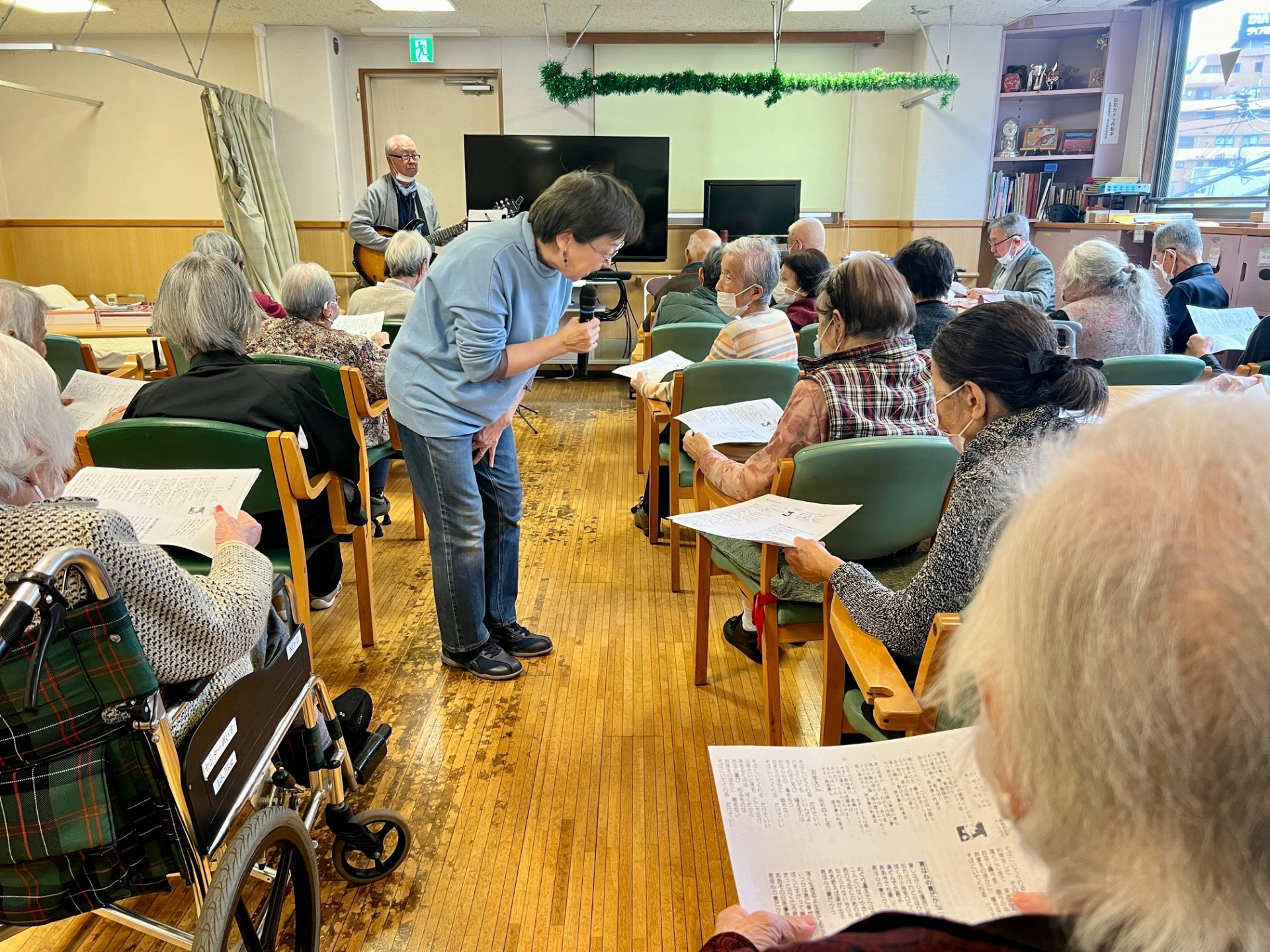 三宮先生は笹幡で月に一度ギター演奏会を開催しています♪普段は三宮先生はギターを弾き、皆様が好きな歌を歌うことができます♪♪