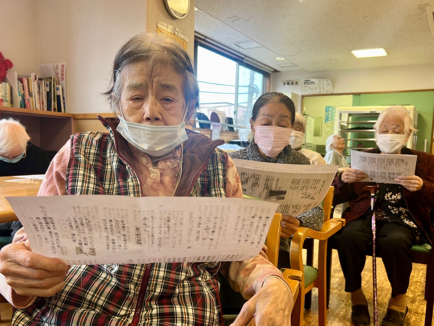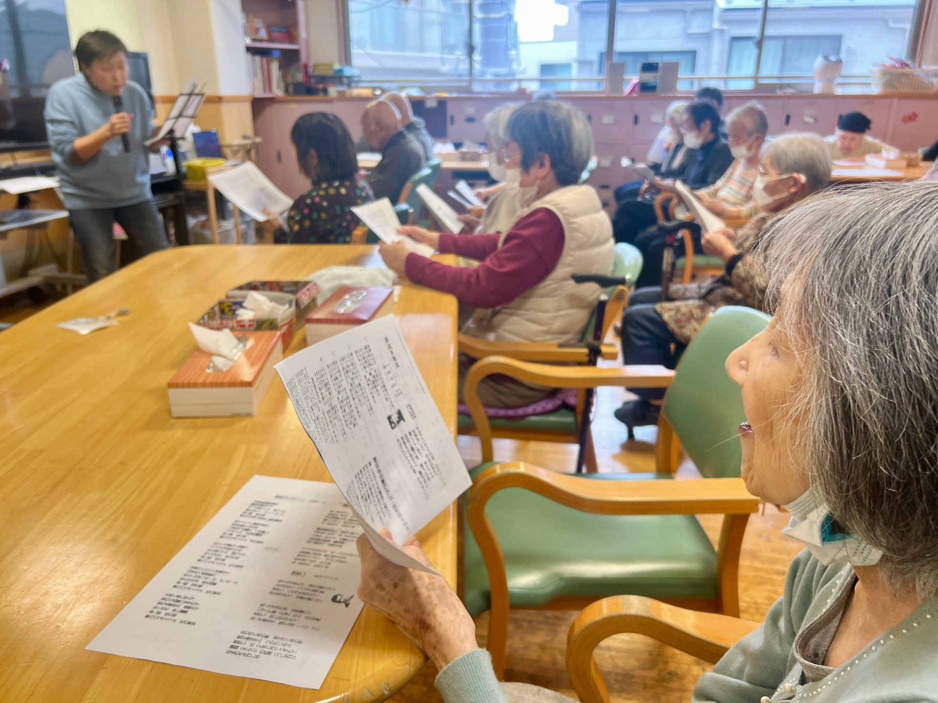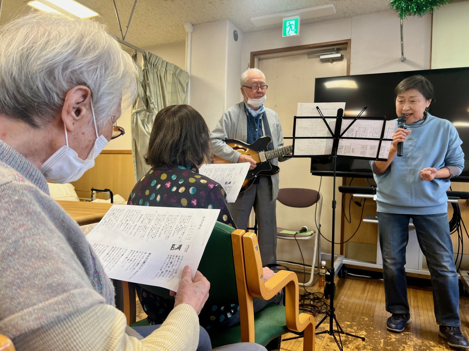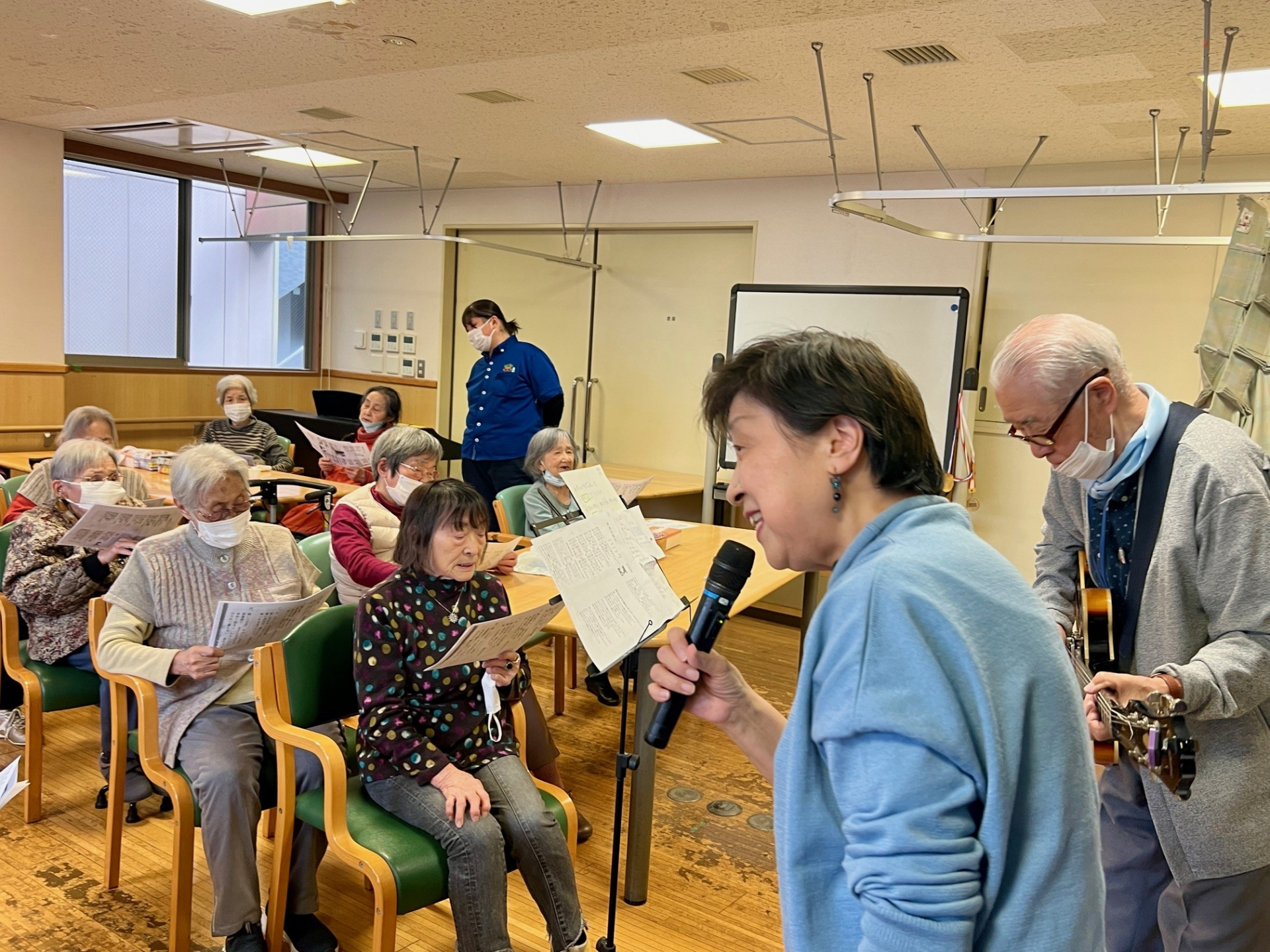 皆様は笑顔で楽しそうに歌い、先生たちと一緒に歌おうとしました。