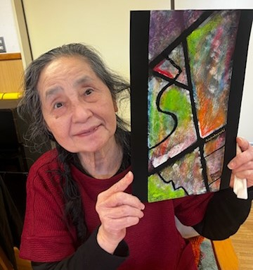 今回の臨床美術ではオイルパステルやクレヨンを使って作品を創作しました。