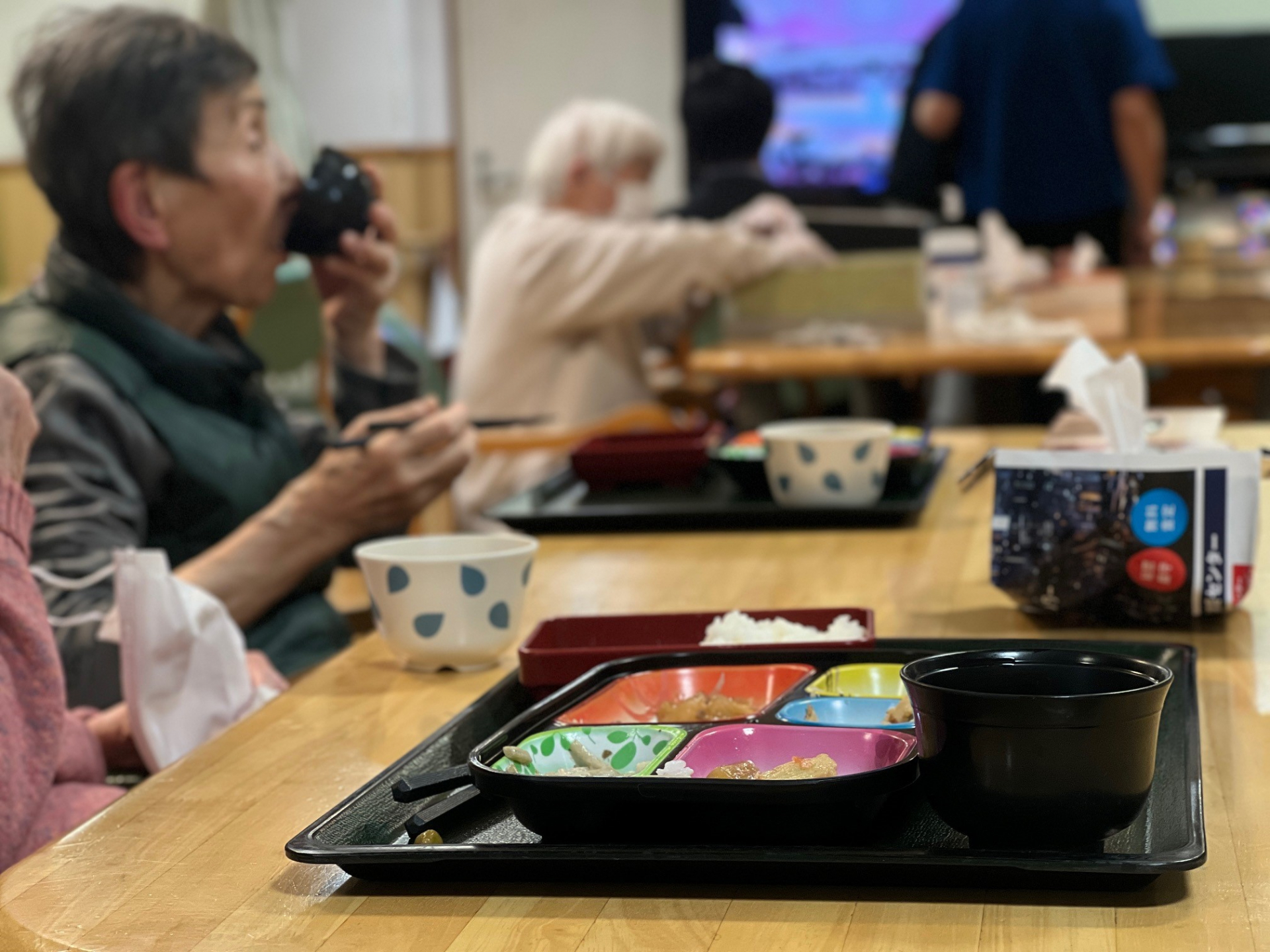 夕食を希望される方にはお持帰り用のお弁当セかンターで召し上がって頂くの2パターン。