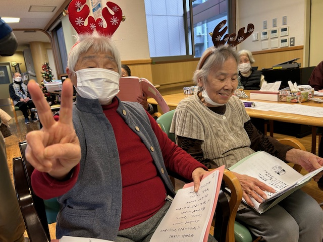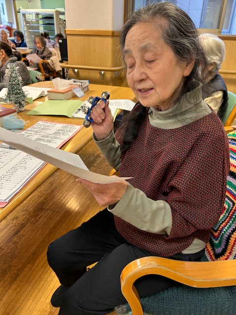 利用者さまが”リンリン”とハンドベルを鳴らしながら大きな声で歌われる様子が見られました。