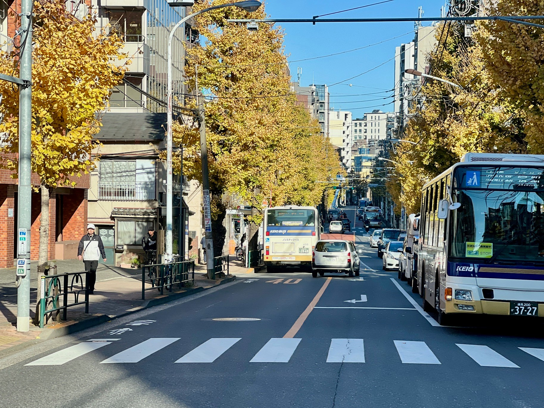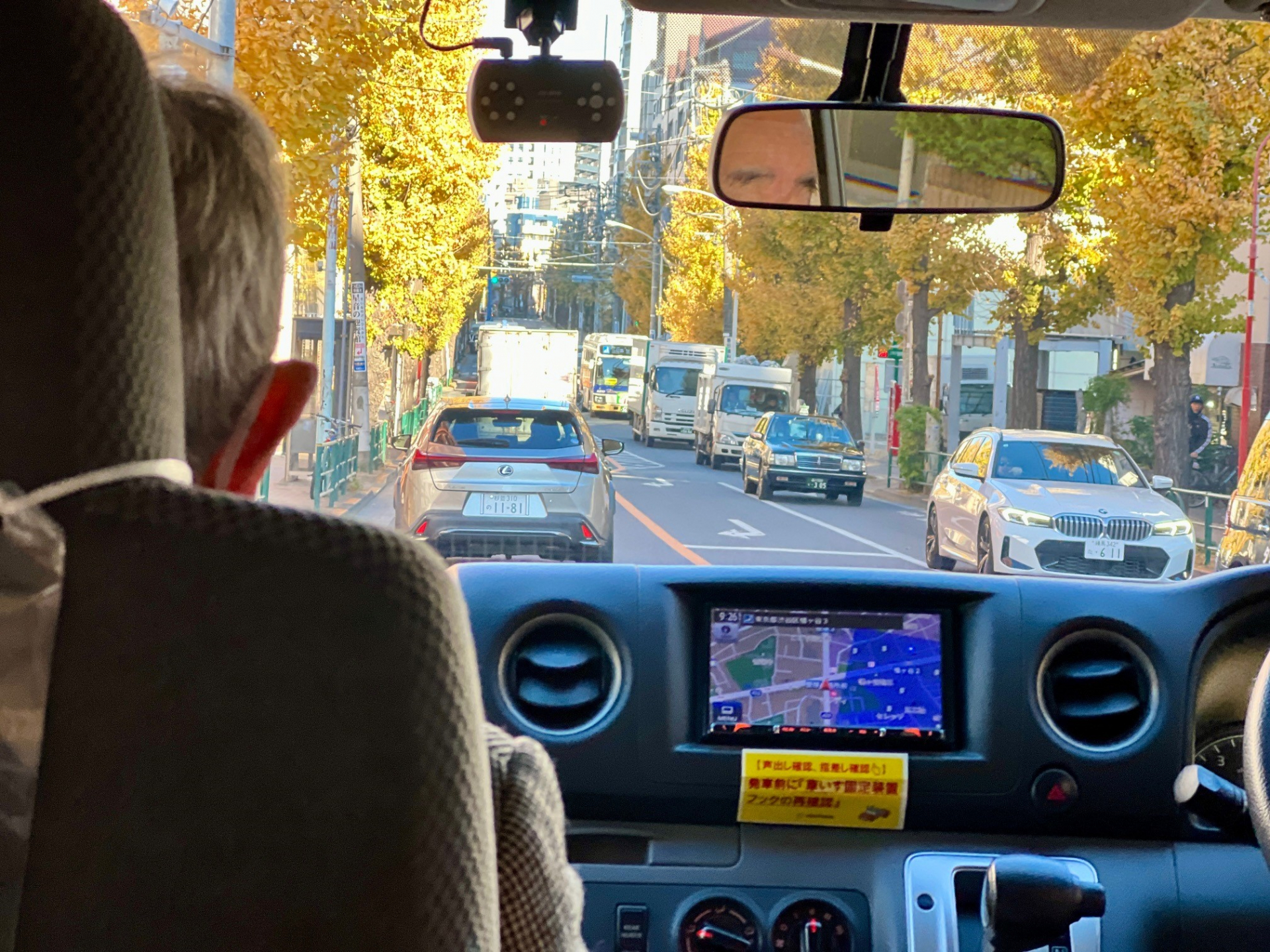 窓の外を見ると両側に黄色や赤の葉っぱが広がっていて、本当に素敵です。