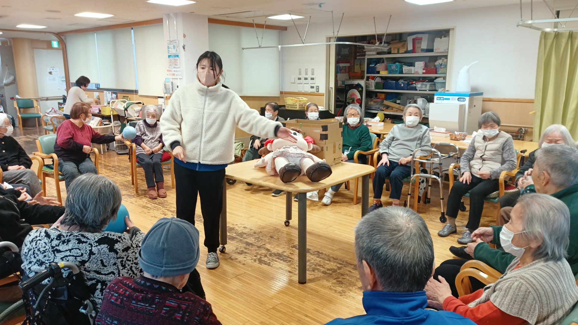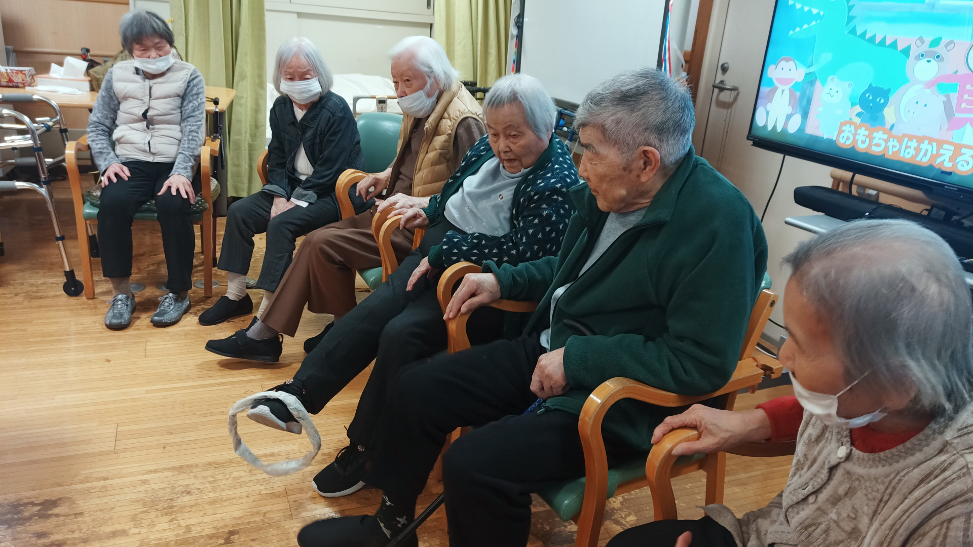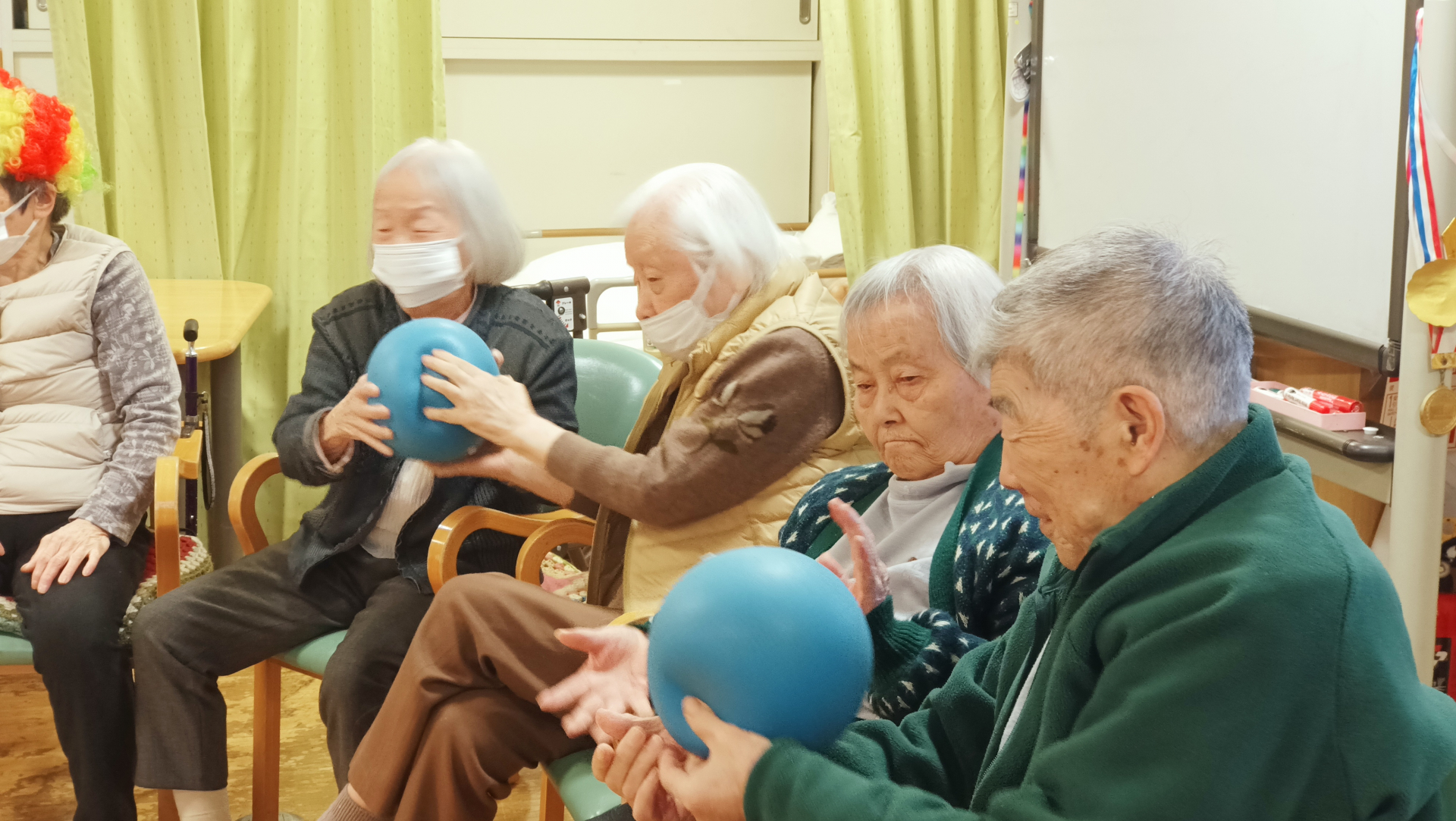 ご利用者さまが円になって爆弾(ボール)を音楽がかかっている間、お隣にボールを渡してぐるぐると回します。