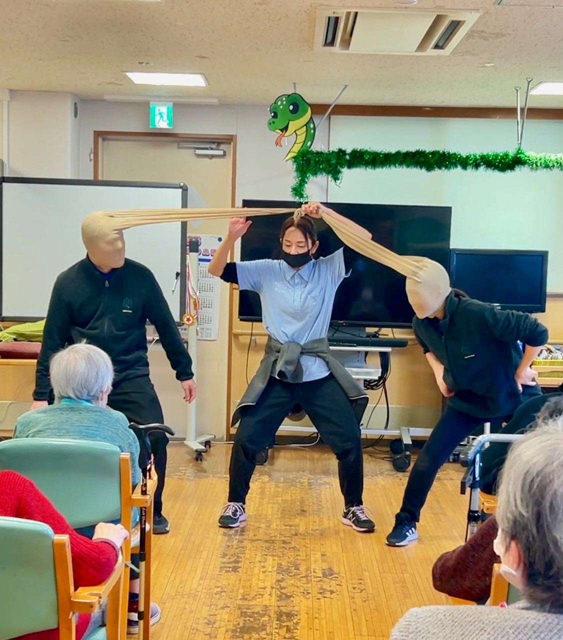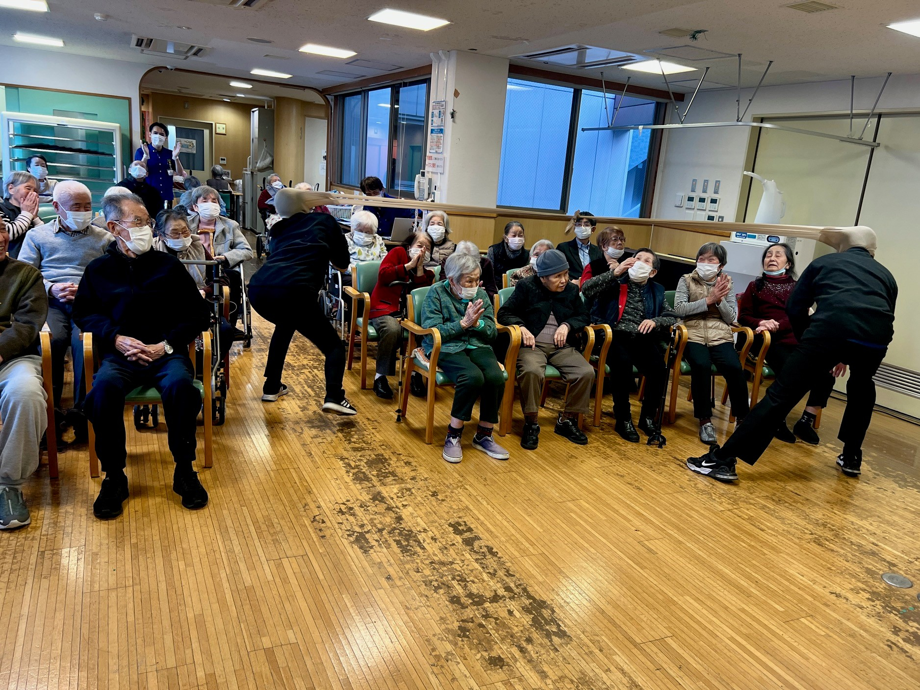 【笹幡デイ】職員による新年会♪~パンスト相撲・大正琴編~