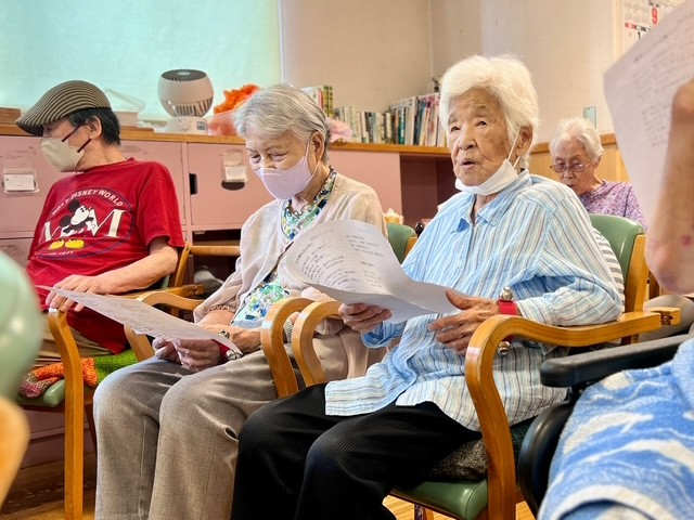新しい曲に入る前にはその歌の背景や作詞・作曲者、歌われた時代や歌詞の意味について話を交えながら、ご利用者様と一緒に振り返っていきます。