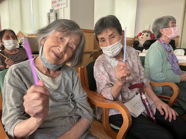 サイリウムを持ちながら、ご利用者さまも一緒に口ずさみ、会場全体が音楽に包まれたようなひととき。