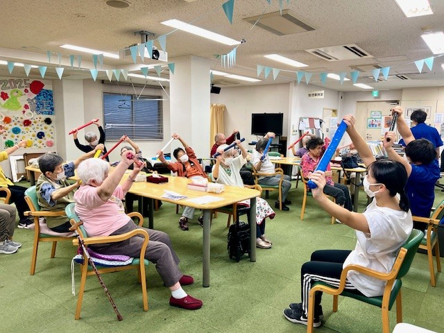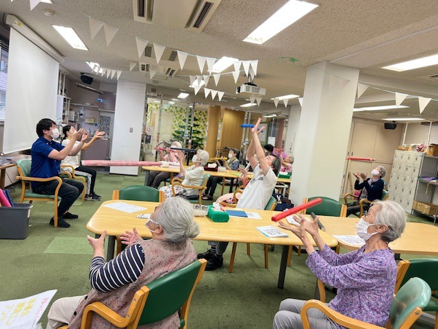 普段よりも背筋をピンと伸ばしたり、腕を高く上げたり、足をリズムよく動かしたりと、皆様がとても生き生きと取り組まれている姿が印象的でした。