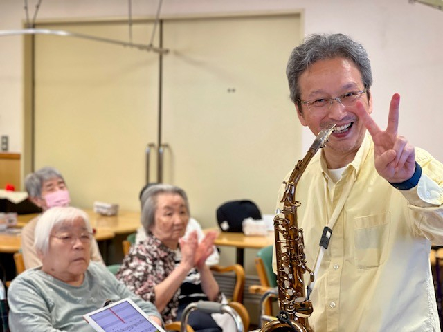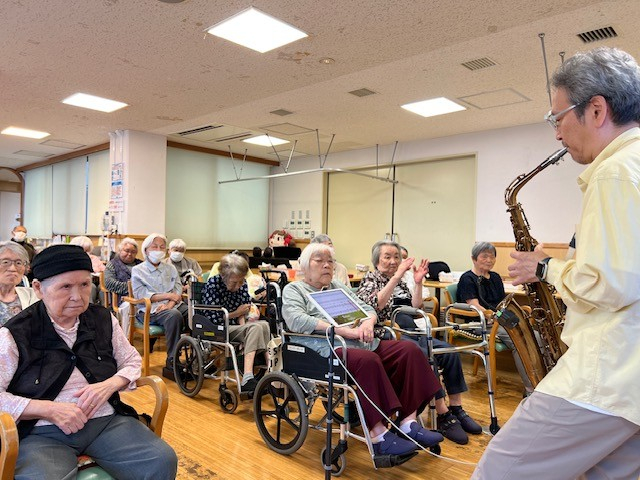 今回のレクリエーションではボランティアの古屋さんがサックスを演奏してくださいました。