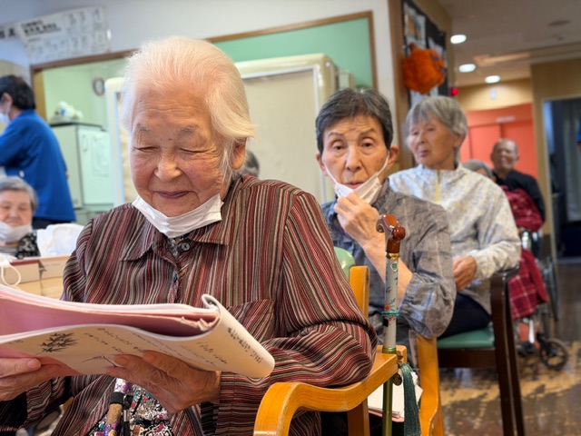 また、歌詞を読む・リズムをとる・声を合わせるという一連の動作は脳の活性化にも効果的で、認知症予防や感情表現の促進にも役立ちます。