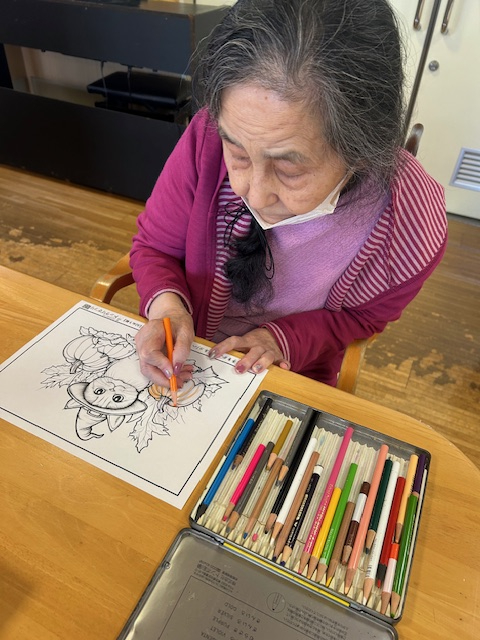 普段塗り絵をされないご利用者さまも夢中になって、塗り絵をされていました。
